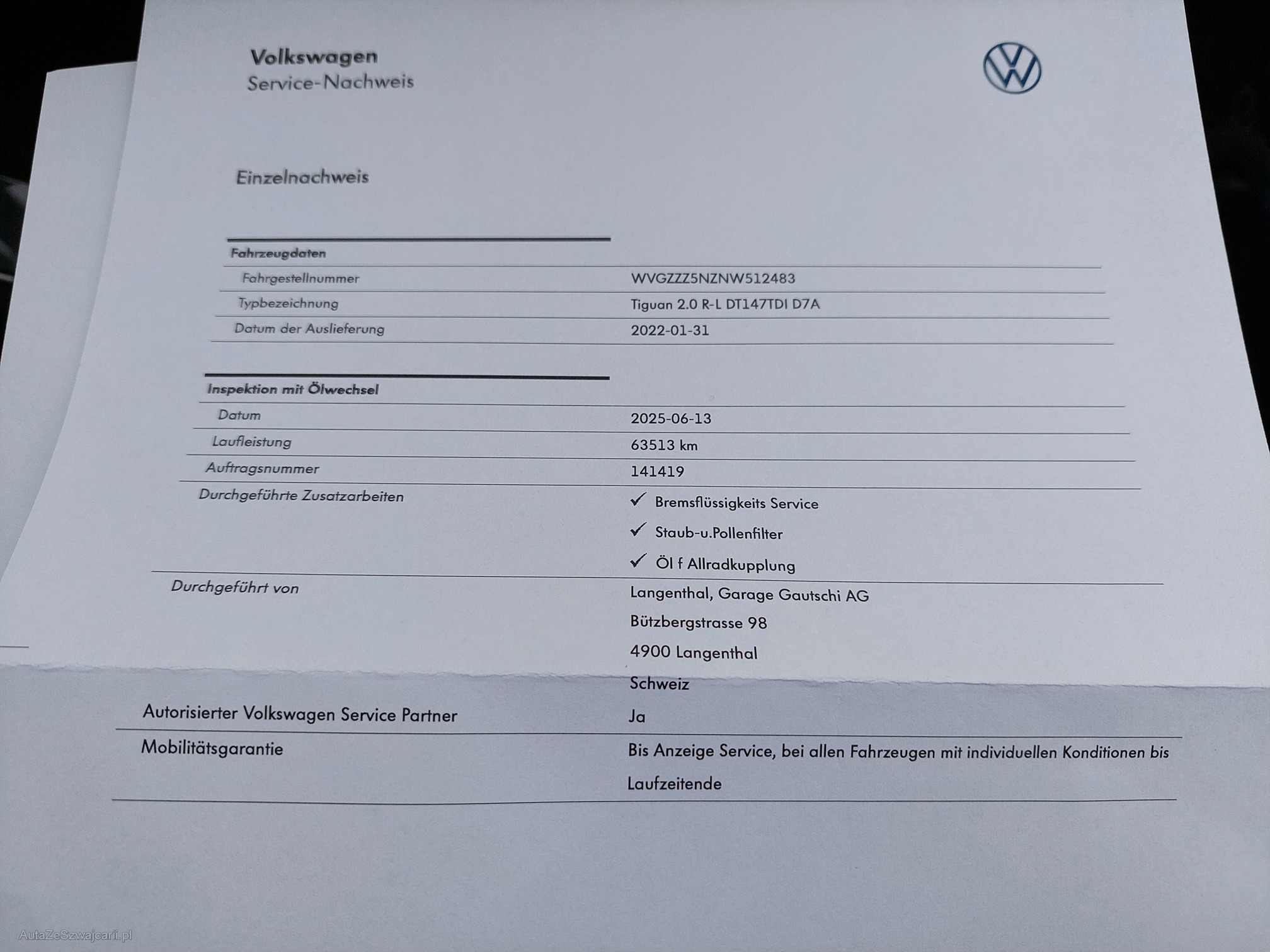 | VIN | WVGZZZ5NZNW512483 |