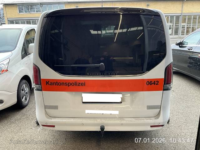 | Serienausstattung | AdBlue-Tank 24 l, Airbag: Airbag Fahrer und Beifahrer, Airbag:Thorax Seitenairbag für Fahrer und Beifahrer, Airbag:Window-Kopfairbag für Fahrer und Beifahrer, Antiblockiersystem (ABS), Assist: ATTENTION ASSIST (Aufmerksamkeitsassistent), Assist: Antriebs-Schlupf-Regelung (ASR), Assist: Feststellbremse elektrisch, Assist: Seitenwindassistent, Assist: Serviceintervallanzeige ASSYST mit Wartungsrechner, Assist: Tempomat mit variabler Geschwindigkeitsbegrenzung SPEEDTRONIC, Assist:ADAPTIVE BRAKE, Trockenbremsen bei Nässe und Berganfahrhilfe, Assist:Aktiver Park-Assistent, automatisches Einparken in Parkplätze längs und quer zur Fahrbahn, Assist:Bremsassistent BAS mit Bremskraftunterstützung bei erkannten Notbremsungen, Assist:Bremsbelagverschleiss-Warnanzeige durch Kontrollleuchte für Vorderachsbremsen, Assist:Crashaktive Pedalanlage, Assist:Flüssigkeitsstand-Warnanzeige für Kraftstoff, Öl, Kühlwasser und Scheibenwaschwasser, Assist:Heizung für Scheibenwaschanlage, Assist:Mercedes-Benz Notrufsystem und Pannenmanagment, Assist:Reifenluftdrucküberwachung, Assist:Scheibenwischer mit Regensensor und Tipp-Wischfunktion, Assist:Seitenaufprallschutz, Assist:Warnsummer und Warnanzeige im Kombiinstrument für nicht angegurteten Fahrer und Beifahrer, nicht ausgeschaltetes Standlicht und angezogene Feststellbremse, Aussenspiegel, beheizt, von innen elektrisch einstellbar und in Wagenfarbe lackiert, mit asphärisch gewölbtem Spiegelglas und integrierter Blinkleuchte, Aussentemperaturanzeige, Dekor:Innenhimmel in Stoff, kristallgrau, Dekor:Zierelemente Klavierlackoptik, schwarz, hochglänzend, Dieselpartikelfilter, Elektrik für Anhängersteckdose, Elektronisches Stabilitäts-Programm (ESP), Fahrwerk:Allradantrieb permanent, 4MATIC, Fahrwerk:Direktlenkung mit geschwindigkeitsabhängiger Lenkkraftunterstützung und variabler, Fahrwerk:Komfortfahrwerk, Fenster fest hinten, Fenster fest vorne links und rechts im Fahrgastraum, Fensterheber elektrisch mit Komfortbetätigung und Einklemmschutz, Garantie: 3 Jahre oder 100'000 km Gratis-Service bis 100'000 km (ab 1. Inv.), Getriebe:9G-TRONIC inklusive DIRECT SELECT Wählhebel und Lenkradschaltpaddles, AGILITY, Handschuhfach abschliessbar und beleuchtet, Heckscheibe heizbar mit Zeitsteuerung, Klima:Klimaanlage TEMPMATIC halbautomatisch geregelt mit Pollenfilter, Kombiinstrument mit Multifunktions- display, Kraftstoffbehälter gross 70 l, Lackierung: Uni-Lackierung, Lenkrad: Lenkrad in Neigung und Höhe verstellbar, Lenkrad:12-Tasten-Multifunktionslenkrad in Leder im 3-Speichen-Design mit 2 Chromspangen inklusive Lederschalthebel, Licht: Fahrlichtassistent (automatisches Fahrlicht), Licht:Adaptives Bremslicht blinkend, Licht:Ausstiegsleuchten in den Seitentüren, Licht:Blinker mit Komfort-Tipp-Schaltung, Licht:Reflexionsscheinwerfer H7 inkl. Tagfahrlicht, Luftzuheizer elektrisch in Frontheizung (PTC-Element), Media:Digitales Radio (DAB), Media:Erweiterte Konnektivität. 3 Jahre Laufzeit inklusive, Media:Komm.-Modul LTE für digitale Dienste, Media:MBUX Multimediasystem mit 7-Zoll- Touchscreen, Media:Radioantenne in Winschutzscheibe integriert, Mittelkonsole mit Staufach, Paket:Parkpaket, Parktronic inklusive Rückfahrkamera, Paket:Spiegel-Paket, bestehend aus Aussen- und Innenspiegel automatisch abblendbar, Aussenspiegel automatisch heranklappbar inklusive Umfeldbeleuchtung, Polster:Polsterung Stoff Santiago, Reiserechner im Multifunktionsdisplay mit Momentanverbrauchsanzeige, Räder: Stahlräder 17J, Räder:Stahlfelgen mit Radvollabdeckungen 6,5Jx17 Bereifung 225/55R17, Servolenkung geschwindigkeitsabhängig, Sitze:4 Einzelsitze im Fond vis-à-vis Stellung, Lehnen neigbar, Rückenlehnen klappbar mit Tischfunktion, 4-Wege-Kopfstützen, Sitze:ISOFIX Kindersitzbefestigung im Fond, Sitze:Komfortsitze Fahrer/Beifahrer (Längsverstellung, stufenlose Sitzhöhen- und Lehnenneigungsverstellung, Sitzkissenneigungsverstellung, 4 Wege Kopfstütze und innenliegender Armlehne), Sitze:Sicherheitsgurte 3-Punkt inklusive Gurthöhenanpassung mechanisch, Komfort-Automatik, Gurtkraftbegrenzer und Gurtstraffer, Sonnenblenden mit Kosmetikspiegel und Kartenhalter, beleuchtet und seitlich, Türen: Heckklappe mit Fenster inkl. Heckscheibenheizung und Wisch-Waschanlage, Türen: Kindersicherung mechanisch in den Schiebetüren, Türen: Schiebetüre links und rechts, Verbandstasche, Vliesbatterie 12 V, 92 Ah, Warmluftkanal zum Fahrgastraum, Warmwasser-Zusatzheizung als Standheizung und Standbelüftung, Warndreieck, Wegfahrsperre elektronisch inklusive Schliessanlage mit 3-Kanal-Funk-Fernbedienung im elektronischen Schlüssel in Chromoptik, optischer Schliessrückmeldung und Notöffnung, Wärmedämmendes Glass rundum, Zentralverriegelung mit Innenschalter, automatischer Verriegelung (abschaltbar) und Crash-Sensor mit Notöffnung, Zusatzwärmetauscher mit Luftführung, 3-stufiges Gebläse Fahrgastraum |