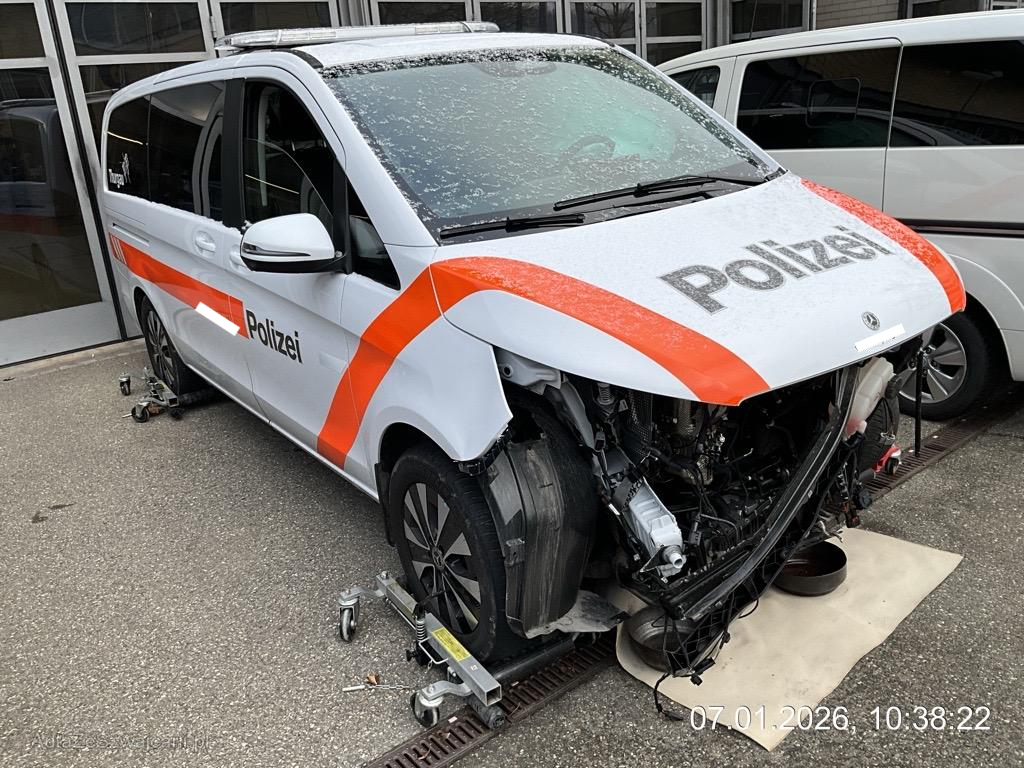 | Schadensbeschreibung | Front massiv eingedrückt; Vorbau nach rechts verschoben; Längsträger vorne links und rechts nach rechts abgeknickt; Diverse Motoranbauteile beschädigt; Aufhängung links verbogen oder gebrochen; Seiten- und Kopfairbag links + Gurtstraffer ausgelöst - AUFZÄHLUNG NICHT ABSCHLIESSEND / Alle polizeiliche An- und Einbauten und Beschriftungen werden entfernt / Vorbestandene Schäden: Gebrauchsspuren |
