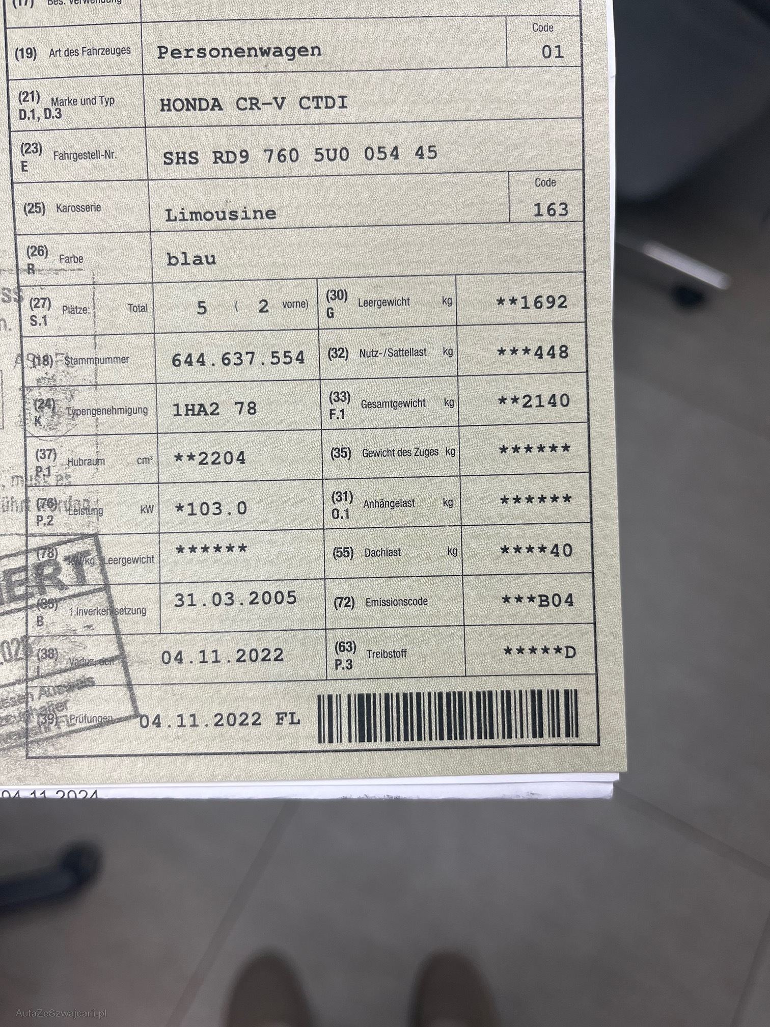 | Letzte Inspektion | 2022-11-01 |