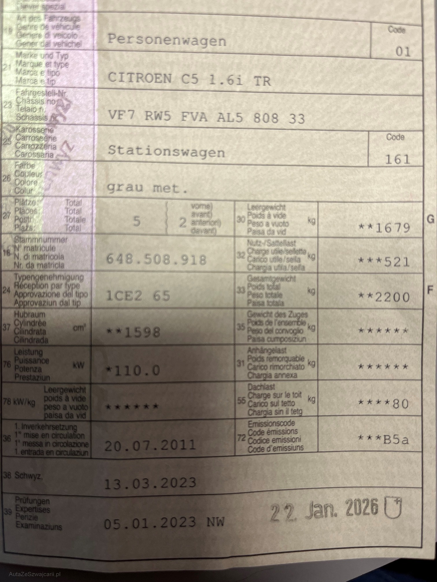 | Kommentar | Wagen wurde noch gefahren, hat jedoch nicht die volle Leistung, Problem mit Turbolader, siehe Foto von Fehlercode. Motorlampe leuchtet Ab MFK 01.2026 Leichter Hagelschaden Inkl. 4 Sommerfelgen (ohne Reifen!) Diverse kleinere Beulen und Kratzer. Kein Werkstatttest gemacht. Keine Garantie und keine Nachverhandlungen bei weiteren Mängeln |