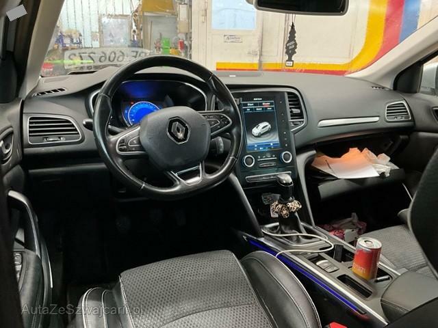 | Condition_and_Equipment | Demontage Persönliche Gegenstände oder Ladegut im Fahrzeug werden entfernt. Bereifung Fahrzeug wird mit Winterräder abgegeben. Zweiter Radsatz vorhanden --- Front Front rechts eingedrückt. Motorhaube Hagelschaden Heck Heckdeckel Hagelschaden. Motor Klimakondensator ist eingedrückt. Achse Risiko Vorderachse. Dach Hagelschaden am Dach. Sonstige Schäden Div.Carrosserie Teile sind leicht beschädigt. Div. Roststellen am Fahrzeug. Lackierung matt (stumpf, beschädigt). Hagel Hagelschaden leicht. --- Serienaustattung Airbag Fahrer und Beifahrerseite Elektrische Fensterheber vorne Aussenspiegel elektrisch verstellbar und heizbar Seitenairbag Fahrer und Beifahrerseite Nebelscheinwerfer Mittelarmlehne hinten Elektrische Fensterheber hinten Deaktivierung Beifahrerairbag Windowbags vorne + hinten ABS und EBV Elektr. Bremskraftverteilung inkl. BA Zwei Zonen-Klimaautomatik Tempomat mit Geschwindigkeitsbegrenzer Automatisch abblendbarer Innenspiegel Dunkle Verglasung hinten Regen- und Lichtsensor Kindersitzverankerung ISOFIX hinten Sitzbezüge in Stoff/ Kunstleder Automatische Parkbremse Renault Chipkarte Keyless-Drive Hands-free Licht- und Regensensor Berganfahrhilfe Fahrersitz höhenverstellbar Beifahrersitz höhenverstellbar Reifenreparatur-Kit Stop + Start System LED-Scheinwerfer LED Tagfahrlicht Aussenspiegel elektrisch einklappbar Sitzbank hinten 1/3 - 2/3 umklappbar Sitz mit Massagefunktion/ vorne links Leichtmetallfelgen 17" schwarz Spurhalteassistent LDW Details siehe gültige Preisliste des Importeurs Einparkhilfe vorne und hinten mit Rückfahrkamera Keine Gewähr auf die Angaben der Serienausstattungen Multifunktionslenkrad Leder DAB+ Digital Audio Broadcast Adaptiver Fernlichtassistent Digitale Instrumentierung ASR und ESC/ Antriebsschlupf- und Stabilitätsprogramm Fahrersitz mit Lendenwirbelstütze verstellbar Verkehrsschild-Erkennungssystem R-Link/ Media-Navi Bose |