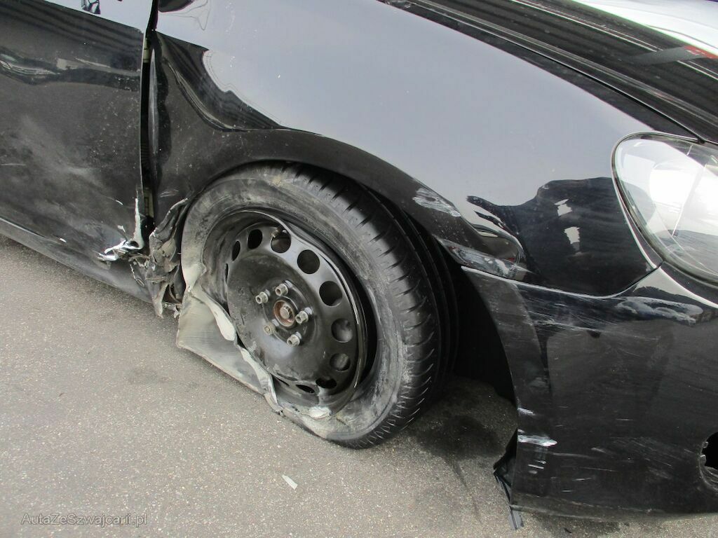 Starker Anstoss Front, Seite und Heck rechts Rechts. Stossstange, Kotflügel, Schwelle und Türe VR zertrümmert. Massiver Schlag auf das rechte Vorderrad. Aufhängung, Antriebswelle und Lenkung sind zerstört. Hinten R sind das Rad und die Stossstange beschädigt.