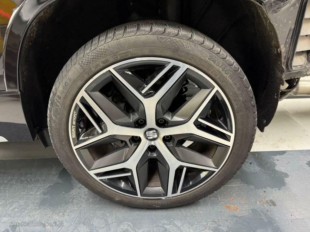 | Serienausstattung | Assist: Multikollisionsbremse, Radiovorbereitung, Antenne, Entstörung und 8 LS, Partikelfilter und Oxydationskatalysator, Sonnenblende Fahrer und Beifahrerseite mit beleuchtetem Spiegel, Licht: LED-Nebelscheinwerfer mit Abbiegelicht, 3-Punkt-Sicherheitsgurte auf allen Plätzen, Lenkrad: Multifunktionslenkrad, Zentralverriegelung mit Fernbedienung, Bordcomputer, Licht: LED Scheinwerfer, Dekorblenden Interieur, Abgedunkeltes Scheibenglas (ab B-Säule), Elektronische Differentialsperre (XDS), Assist: Tempomat, Servolenkung geschwindigkeitsabhängig, Airbag: Fahrer und Beifahrer Airbag, Airbag: Seitenairbag für Fahrer und Beifahrer, Assist: Speedlimiter, Media: 8'' Farbdisplay (Touchscreen), Sitze: Vordersitze höhenverstellbar, Bremsenergie-Rückgewinnung, Teppichfussmatten vorne und hinten, Fahrer-Informationssystem monochrom, Progressivlenkung, Klima: 2-Zonen-Klimaautomatik, Polster: Sitzbezüge in Dinamica sowie Dekorblenden in "schwarz", Easy-Entry Lehnenentriegelung, Innenspiegel automatisch abblendbar, Airbag: Window-Kopfairbags, Sitze: Rücksitzlehne geteilt abklappbar 1/3 - 2/3, Einstiegsleisten in Aluminium, 2 Schlüssel mit Fernbedienung, Licht: LED Heckleuchten, Allradantrieb permanent, Media: SDXC-Kartenleser, Media: USB-Anschluss, Sitzbezüge in Dinamica 'black', Elektronisches Stabilitäts-Programm (ESP) mit Reifendruckkontrolle, Bremsassistent (BAS) und Sperrdifferential, Sitze: Mittelarmlehne vorne, Fensterschachtzierleisten in Aluminium, Airbag: Knie-Airbag für Fahrer, Media: Sprachsteuerung, Media: SEAT Media System Plus, Kopfstützen hinten (3), Schublade unter Fahrersitz, Elektronische Parkbremse, Getriebe: 7-Gang-Sequentielle-Getriebe mit Automatikfunktion, Assist: Müdigkeitserkennung, Assist: Auto-Hold-Funktion, Media: DAB+ (Digital Audio Broadcasting), Wegfahrsperre elektronisch, Media: CD-Laufwerk, Aussenspiegel und Türgriffe in Wagenfarbe, Media: Mobiltelefon Freisprecheinrichtung Bluetooth, Gurtkontrolle, Seitenschutz-Zierleisten in aluminium Look, 4 Leichtmetallfelgen 18J mit Pneu, Assist: Umfeldbeobachtung 'Front-Assist' mit City-Notbremsfunktion, ABS, EBD elektronische Bremskraftverteilung, Radlaufblenden in Wagenfarbe, Fensterheber Elektrisch vorne + hinten, Fahrprofilauswahl, Kühlergrill schwarz, USB Anschlüsse in der hinteren Mittelkonsole 2x, Einstiegsleisten beleuchtet, Licht: Coming-home-Funktion, Lenkrad: Lenkrad und Schalthebelgriff in Leder, Gurte Höhenverstellbar vorne, Sitze: Lendenwirbelstütze vorne manuell, Dachreling schwarz, Kopfstützen vorne höhenverstellbar, ISOFIX Kindersitzvorrichtung, Aussenspiegel rechts und links beheizt, elektrisch verstell-/ und einklappbar, Sitze: Mittelarmlehne hinten, Gurtstraffer vorne, Räder: Reifenreparatur-Set (Tire Fit), Airbag: Beifahrerairbag deaktivierbar, Assist: Fussgängerschutz, Media: AUX-Anschluss, Innenleuchten LED, Assist: Automatische Distanzregelung ACC, Assist: Einparkhilfe vorne und hinten mit optischer Anzeige, Assist: Top View Camera (Rundumblick), Heckklappe elektrisch öffnend ''Virtual Pedal'', Media: SEAT Connectivity Box, Media: SEAT FullLink, Navigationssystem, Parklenkassistent, Schliess- und Startsystem KESSY |