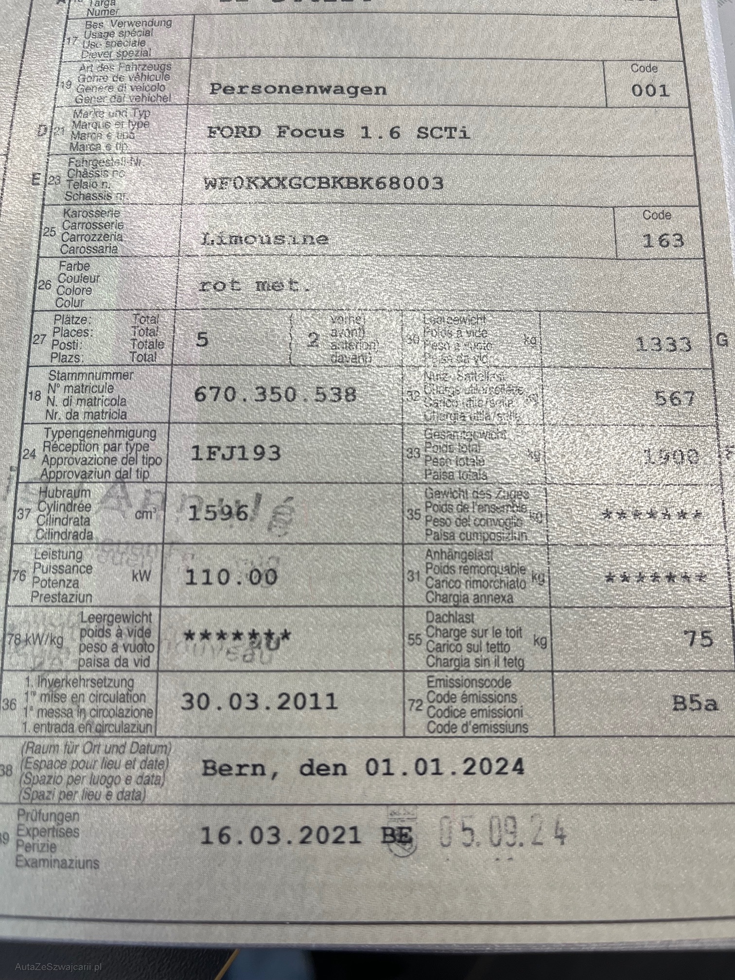 | Kommentar | - Fahrzeug fährt & schaltet einwandfrei - Lenkung sehr schwer - ZR & WP bei ca. 103`000km ersetzt Am Fahrzeug wurde kein Werkstatttest durchgeführt (für sichtbare oder nicht sichtbare Mängel wird keine Haftung übernommen). Verkauf ab Platz, ohne Garantie. Wandelung und Minderung sind ausgeschlossen. |