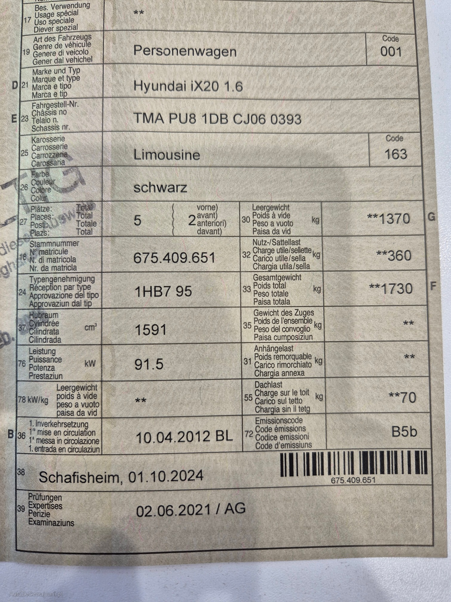 | Letzte Inspektion | 2021-06-01 |