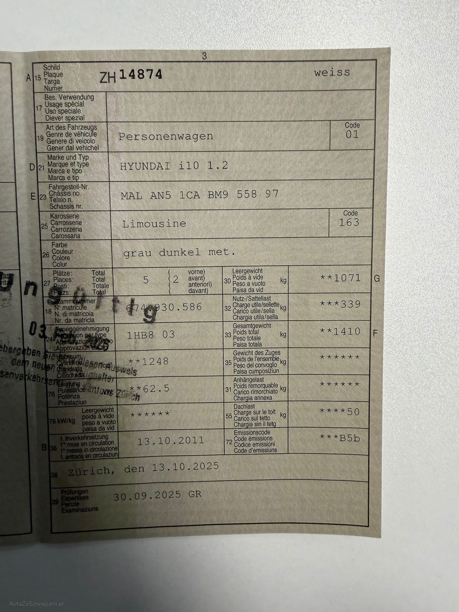| Kommentar | Fahrzeug mit sehr wenigen Kilometer! September 2025 MFK Ab Platz ohne Garantie und Gewährleistung |