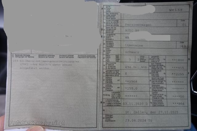 | Condition_and_Equipment | Zustand Fahrzeug ist fahrbar. Fahrzeug ist rollbar. Bereifung Fahrzeug wird mit Winterräder abgegeben. Sonstiges Fahrzeugdokumente vorhanden. --- Weitere Beschädigungen Das Auto ist im Wasser gestanden, kann nicht gestartet werden, es kommen diverse Fehlermeldungen. Im Innenraum ist es feucht mit Kondenswasser. --- Serienaustattung Sitzheizung für Vordersitze Tempostat Aussenspiegel elektrisch verstellbar/ heizbar und anklappbar Airbag Fahrer und Beifahrerseite Seitenairbag Fahrer und Beifahrerseite Servotronic ESP/ ASR/ EDS/ ABS mit EBV Seitliches Kopfairbagsystem SIDEGUARD Fahrerinformationssystem mit Farbdisplay Wärmeschutzverglasung Dieselpartikelfilter DPF Automatisch abblendbarer Innenspiegel Radioempfang digital DAB Klimaautomat Komfort-Mittelarmlehne vorne Pack Glanz Park-System plus vorne + hinten Isofix Kindersitzverankerung für Rückbank Pack Ablage Reifendruck-Kontrollanzeige Audi Sound System Audi Lane Assist (Spurverlassenswarnung) Isofix Kindersitzverankerung für Beifahrersitz Fernlichtassistent LED-Scheinwerfer Leichtmetallräder 17" 10-Speichen Audi drive select (Fahrzeugcharakteristik) Audi pre sense basic Stop + Start System Rücksitzanlage dreisitzig Keine Gewähr auf die Angaben der Serienausstattungen Audi connect Notruf & Service Audi connect Navigation & Infotainment MMI Navigation mit MMI touch response Pack Assistenz Tour Sonderausstattung Lendenwirbelstützen elektr. für Vordersitze Metallic-/ Perleffekt-Lackierung Grösserer Kraftstofftank Multifunktions-Lederlenkrad 4-Speichen/ Schaltfunktion Sonnenblenden ausziehbar MMI Navigation plus mit MMI touch Scheiben abgedunkelt Leichtmetallräder 18" 10-Arm Design Audi Phone Box Kamerabasierte Verkehrszeichenerkennung Audi smartphone interface AdBlue Tank Lichtpaket Ambiente Spurverlassenswarn. inkl. Verkehrszeichenerk. + Notfallass. |