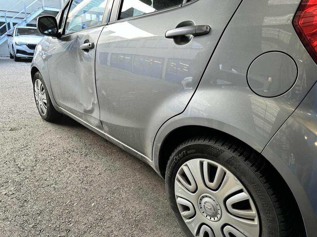 Durch Anprall wurde die Türe vorne + hinten links, Seitenwand links und die B-Säule deformiert.