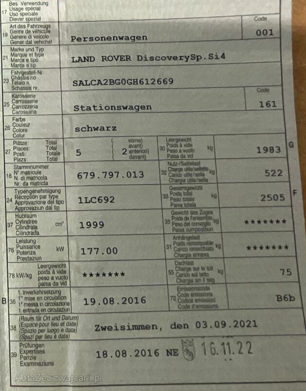 | Typ | Discovery Sport 2.0 Si4 SE |