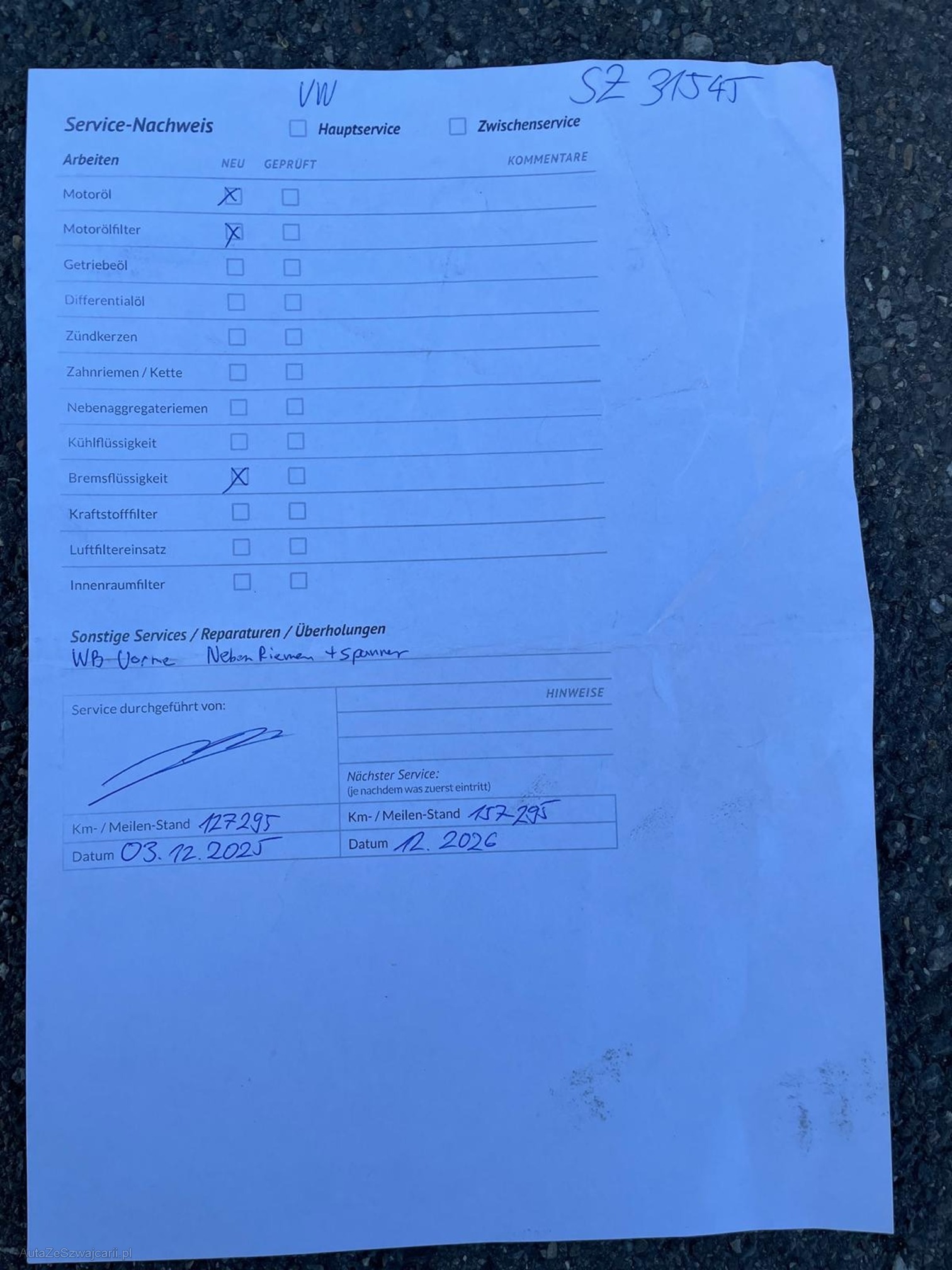 | Zahnriemen gewechselt | No |
