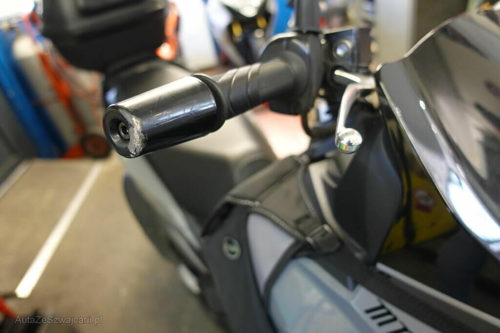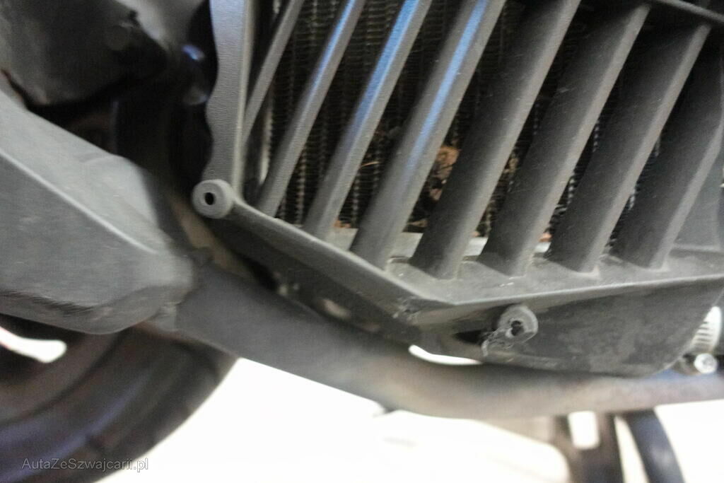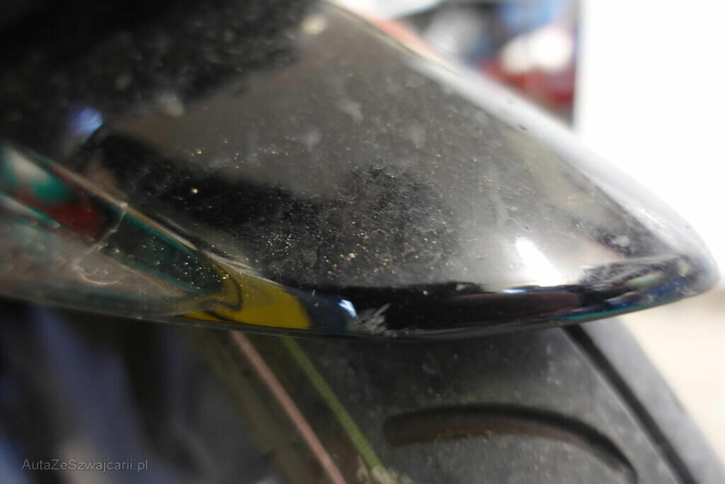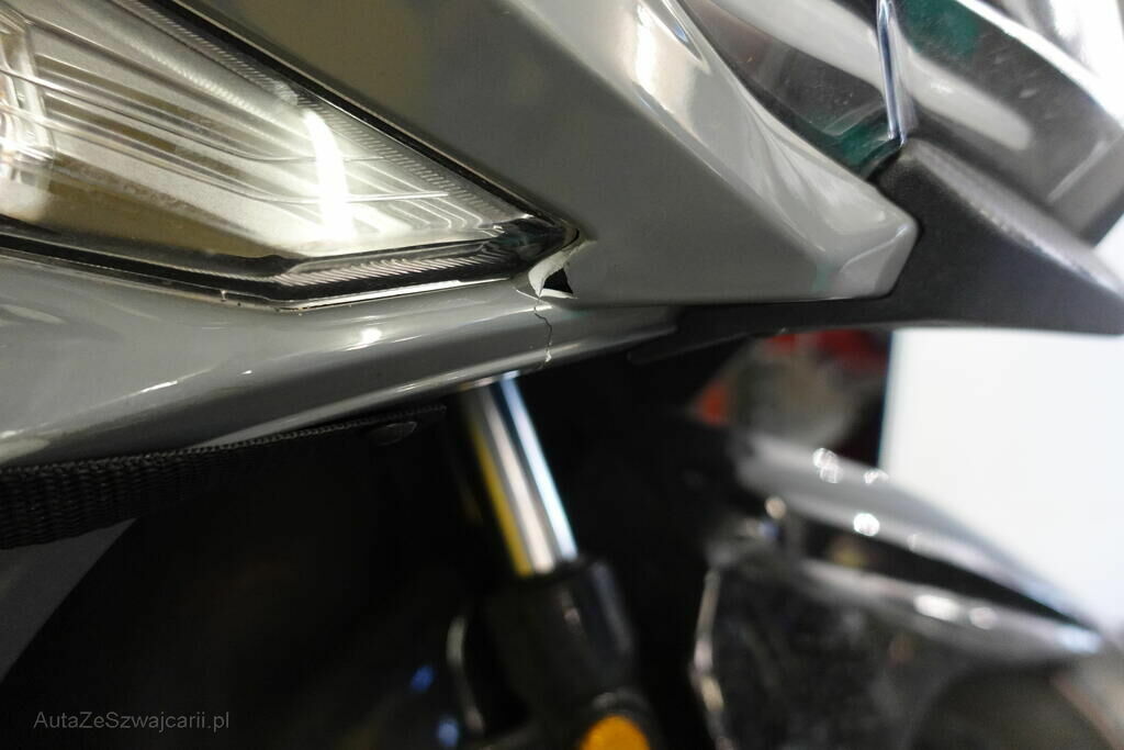 Rétroviseur droit, pare-boue avant, embout de guidon droit et gauche, levier frein avant, carénages latéraux avant et arrière droit, bas de caisse gauche et droit, clignotant avant droit, grille radiateur, protection thermique échappement, top case, couverture thermique; endommagés.