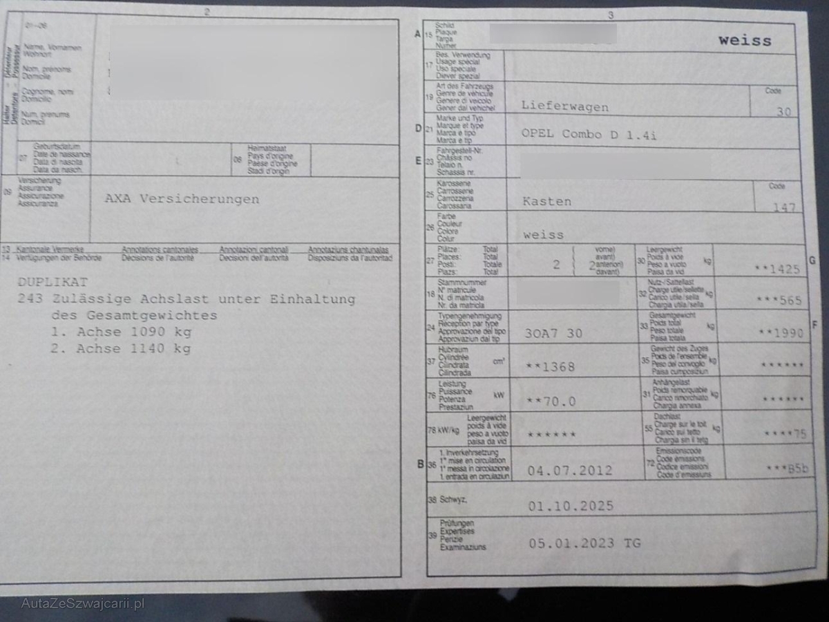 | Fahrzeugausweis | Vorhanden |