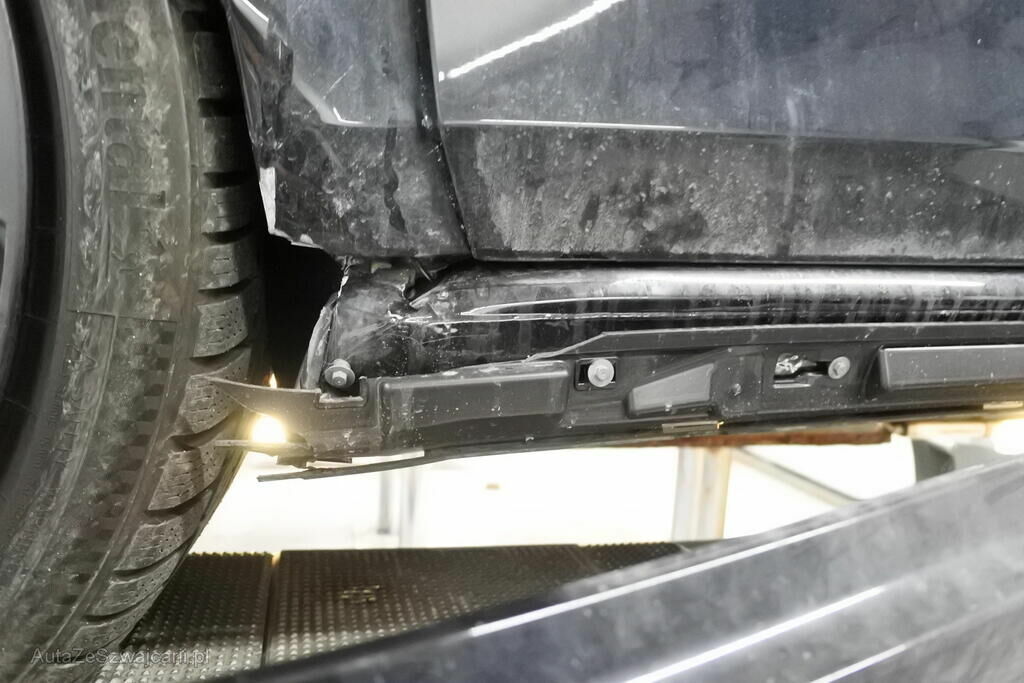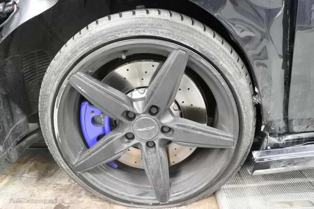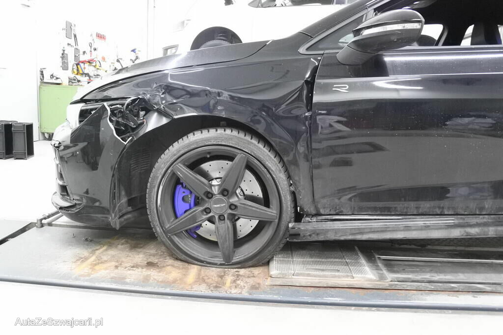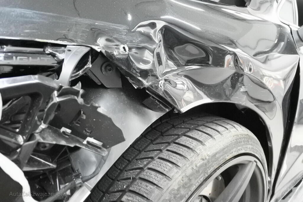 Die Stossstange mit Sensoren, Spoiler, Grill, Halterungen, der Scheinwerfer, der Kotflügel mit Aufnahme und Auskleidung, die Fahrertür, das Scheibenrad inkl. Reifen und deren Aufhängung, das Radhaus, die Schwellerspitze, deren Verkleidung sowie beide Scheibenräder rechts weisen Deformationen auf. Die Radhausspitze ist verformt.