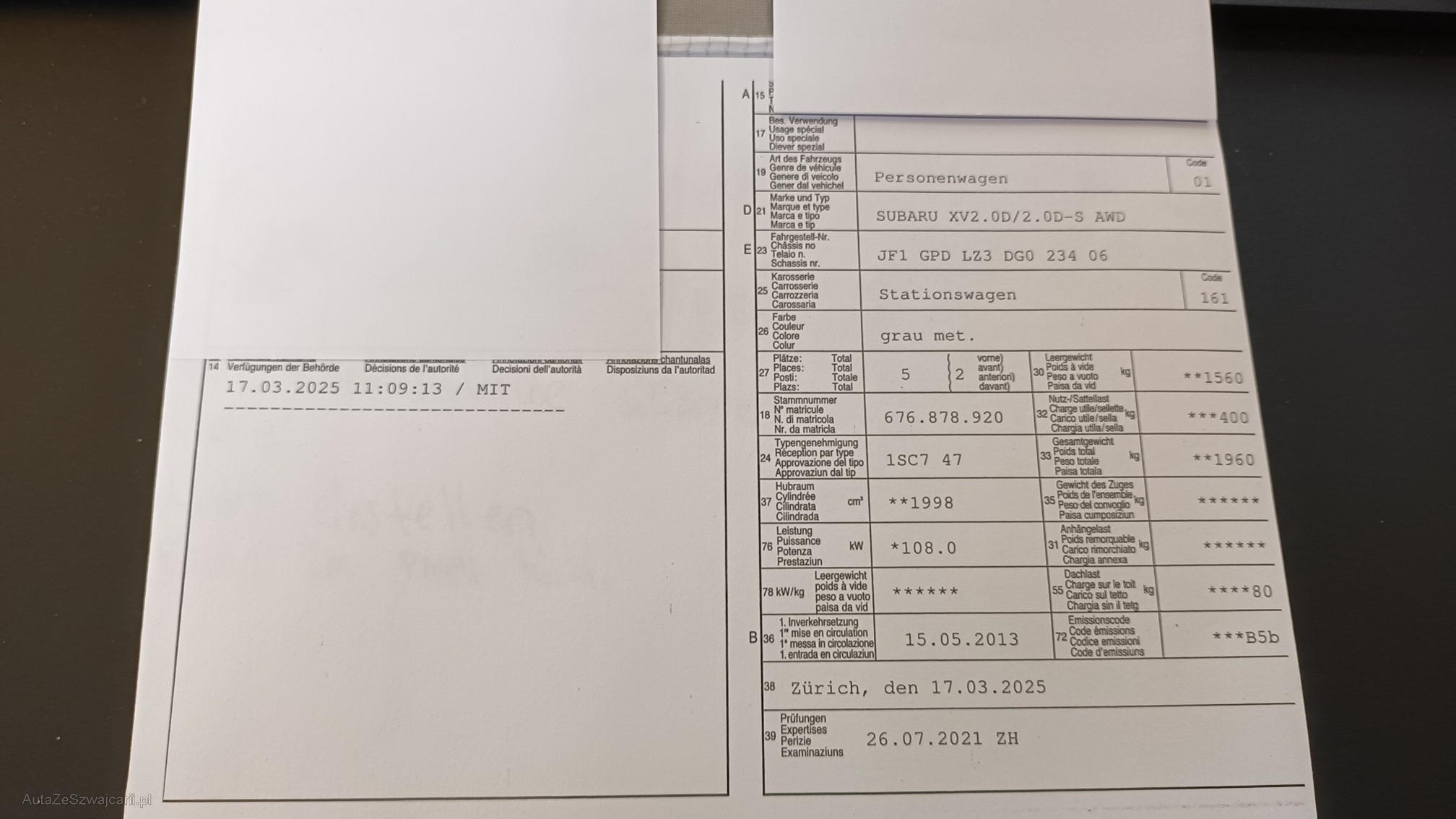 | Kommentar | MFK fällig Kupplungspedal harzt Bremsen vo müssen ers. werden Dellen gemäss Fotos Winterreifen i.O. DPF i.O. Hagelschaden nur sehr leicht Am Fahrzeug wurde keine vollumfängliche Prüfung der mechanischen Teile und der Carrosserie durchgeführt! Das Risiko liegt somit vollumfänglich beim Käufer. Um Missverständnisse zu vermeiden kann das Fahrzeug auf Voranmeldung besichtigt & getestet werden. Wird davon bewusst kein Gebrauch gemacht, liegt die Verantwortung beim Käufer. Nach Zuschlag, keine Nachverhandlungen möglich. Ab Platz ohne Garantie, Wandelung und Minderung werden wegbedungen. |