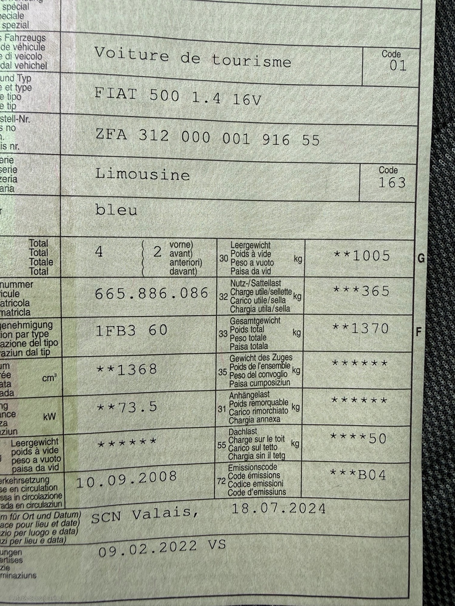 | Kommentar | Aucun test d’atelier n’a été effectué sur le véhicule (aucune responsabilité n’est acceptée pour les défauts visibles ou non visibles). Nous ne testons ni n’inspectons toutes les caractéristiques du véhicule. Le risque incombe donc entièrement à l’acheteur. Après avoir reçu le contrat, il n’y a pas de renégociation, même si des défauts non déclarés sont révélés. Depuis le lieu sans garantie ni garantie, la conversion et la réduction sont assurées. À venir chercher dans les 5 jours ensuite des frais de 15fr par jour sont facturés. |