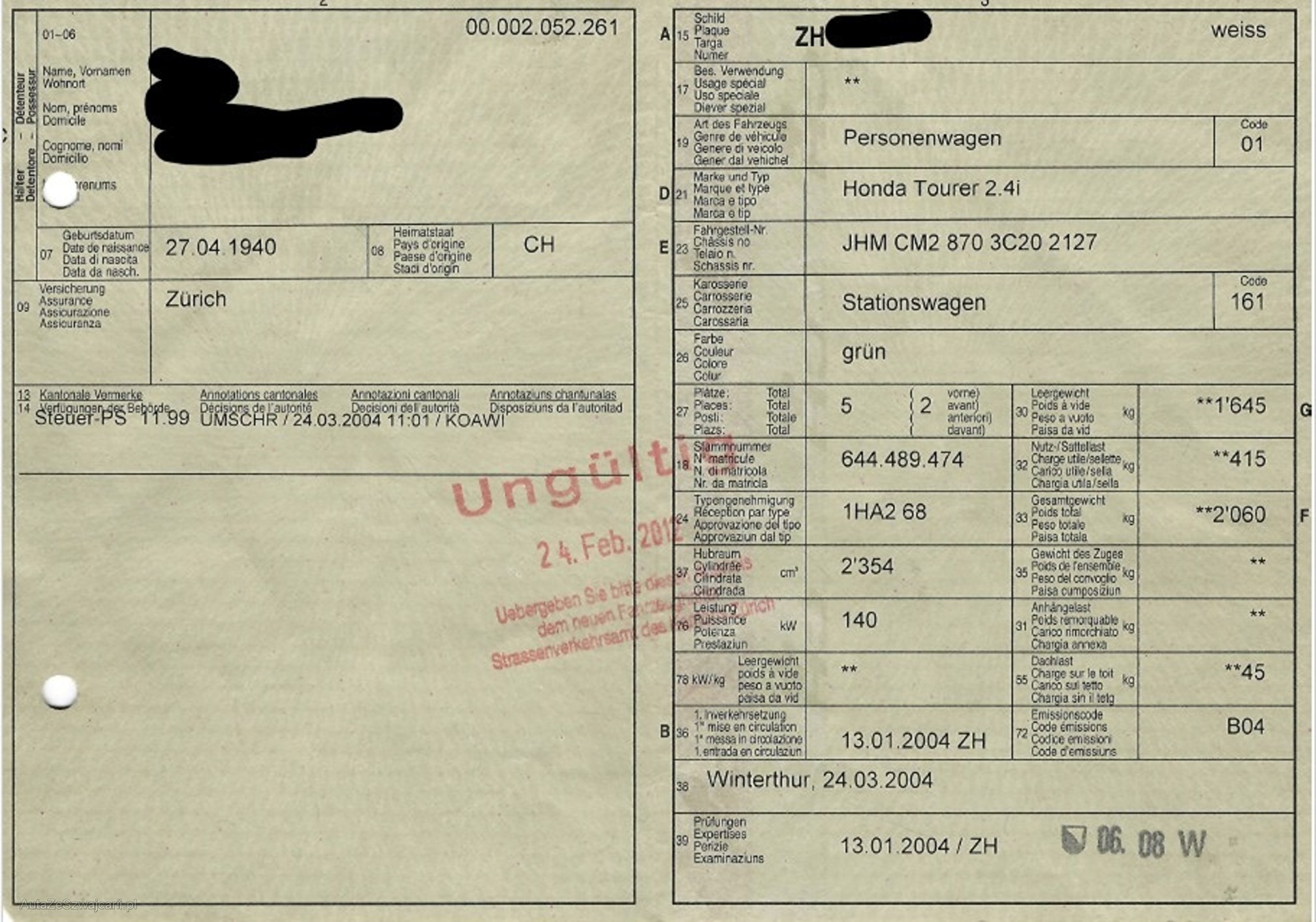| Kommentar | - Bremszange hinten links klemmt, ersetzen => Bremsen hinten (Klötze, Scheiben) ersetzen - Gurt Fahrer rollt nicht auf - Sitzbezug Fahrersitz abgenutzt - Service ist überfällig - MFK ist überfällig (Auto wurde seit 13 Jahren mit Händler-Schild gefahren) - Fahrzeugbeschriftung muss entfernt werden keine vollständige Prüfung, Aufzählung nicht vollständig ABHOLUNG NACH ZUSCHLAG / VERFÜGBARKEITS-DATUM INNERT 7 TAGEN ERFORDERLICH, DANACH FR. 15.-/TAG STANDPLATZ-GEBÜHREN BARZAHLUNG BEI ABHOLUNG / MONTAG-FREITAG 08:00-12:00 UND 13:30-17:00 IM KUNDENAUFTRAG ZU VERKAUFEN, KEINE MWST VORSTEUER AUSWEISBAR. |
