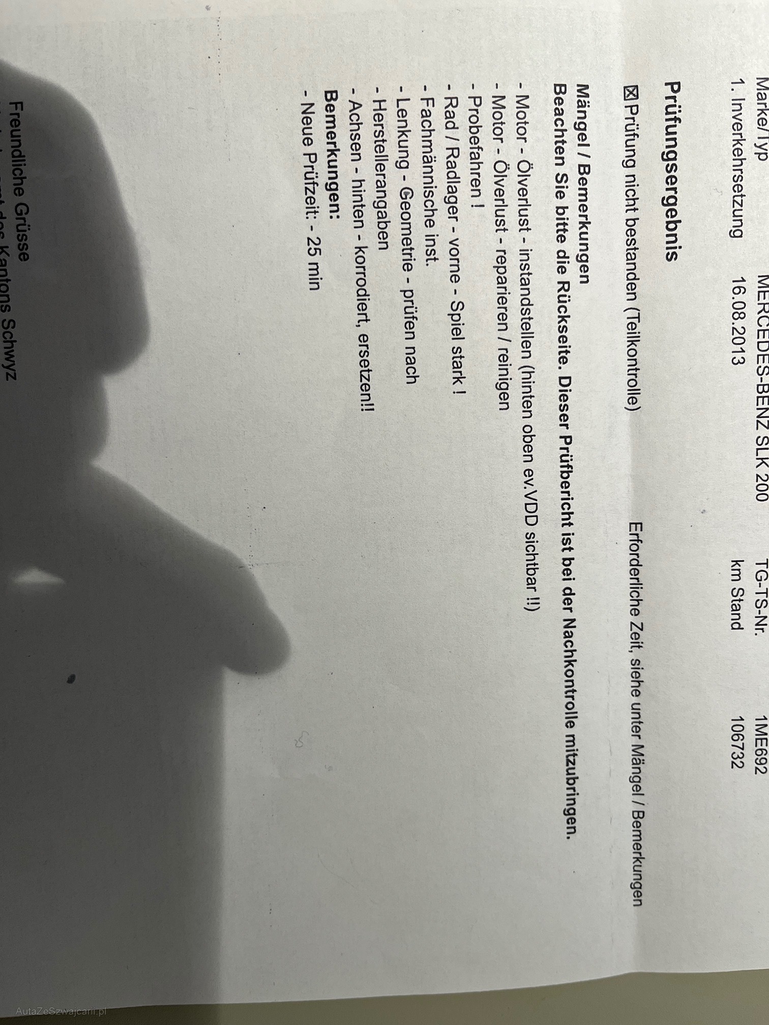 | Kommentar | Kundenfahrzeug aus 1. Hand, hat jedoch diverse technische Mängel - siehe Prüfbericht. Optischer Zustand sehr gut. Am Fahrzeug wurde kein Werkstatttest gemacht (Für sichtbare oder nicht sichtbare Mängel wird nicht gehaftet). Wir testen & kontrollieren nicht alle Funktionen des Fahrzeugs. Das Risiko liegt somit vollumfänglich beim Käufer. Ab Platz ohne Garantie, Wandelung und Minderung werden wegbedungen. |