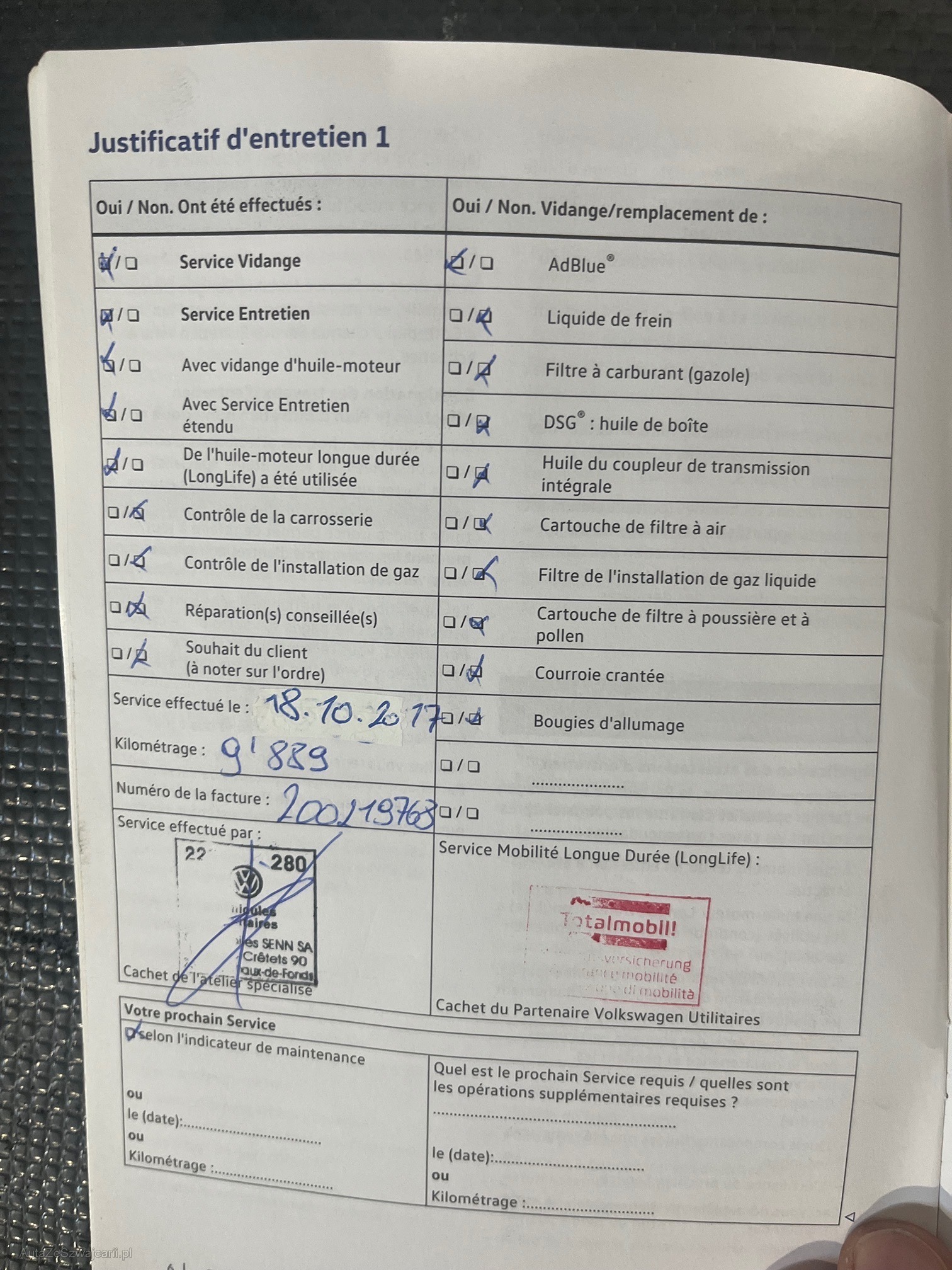 | Kommentar | ab Platz ohne Garantie, wird im Kundenauftrag ausgeschrieben, kurze Kontrolle durchgeführt, Kupplung wurde ersetzt, Motor läuft unrund, evtl. 2-Massenschwungrad, kleine Dellen in Dach, war auf MFK, DPF war kein Mangel, Stossdämpferschutzrohr verrostet, Keilriemen rissig, Stossstange vorne loose und verkrazt, Gebrauchsspuren siehe Bilder, nicht abschliessend. |