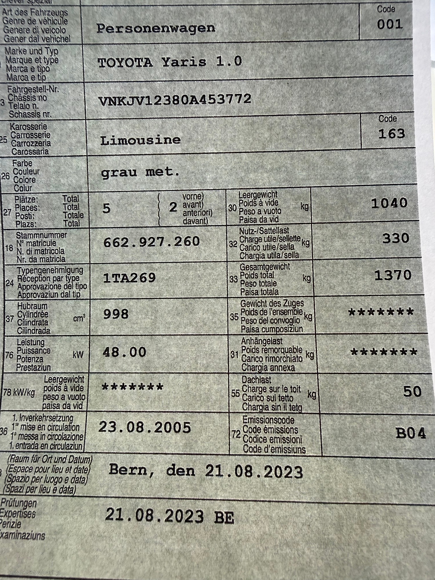 | Kommentar | „Achtung: Das Fahrzeug wurde durch uns nicht geprüft oder getestet.“ |