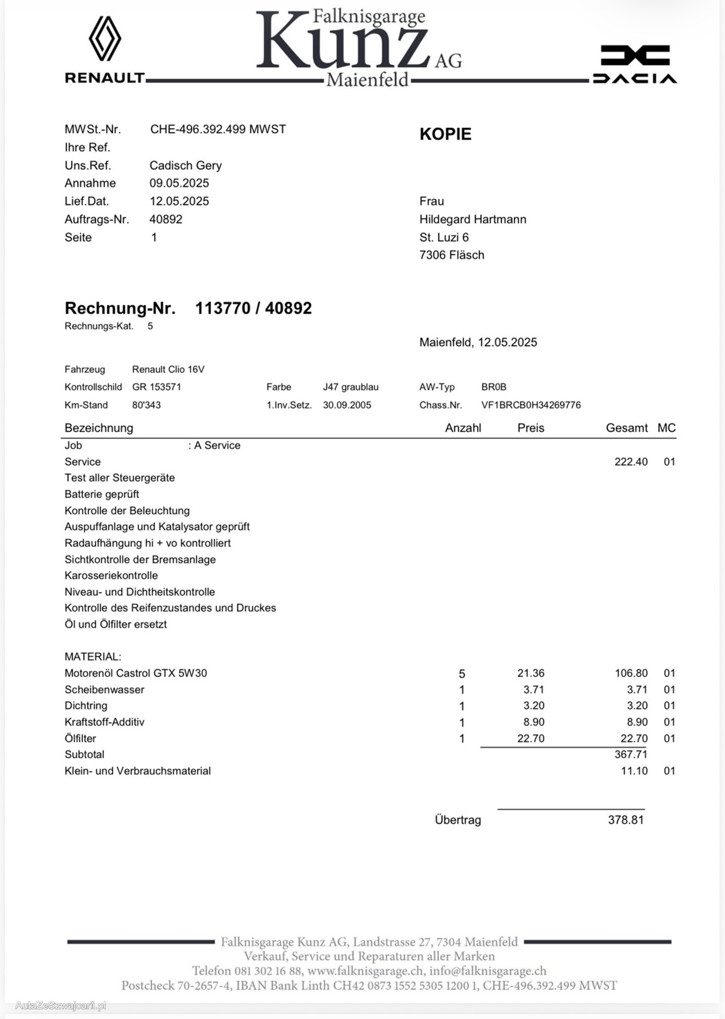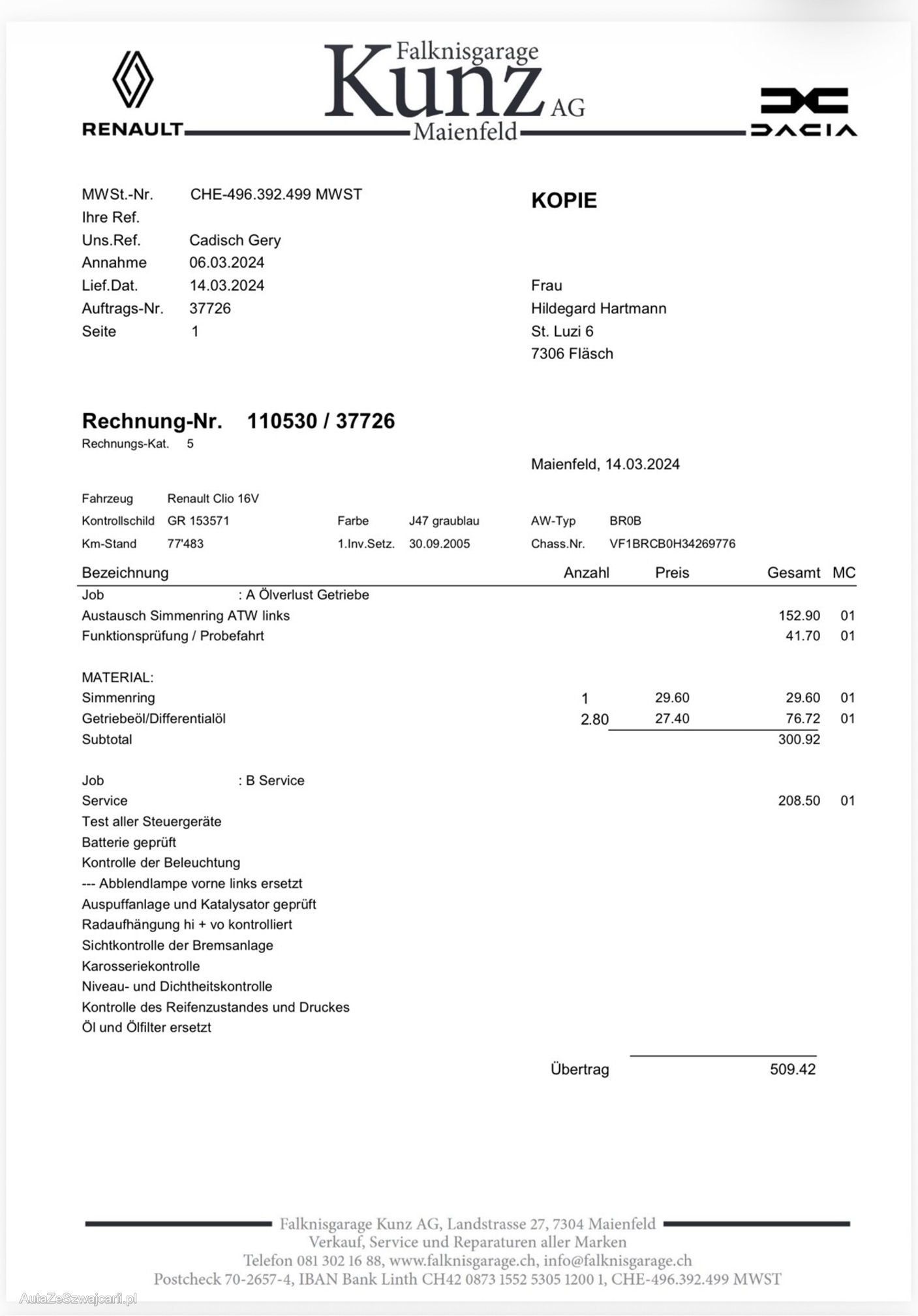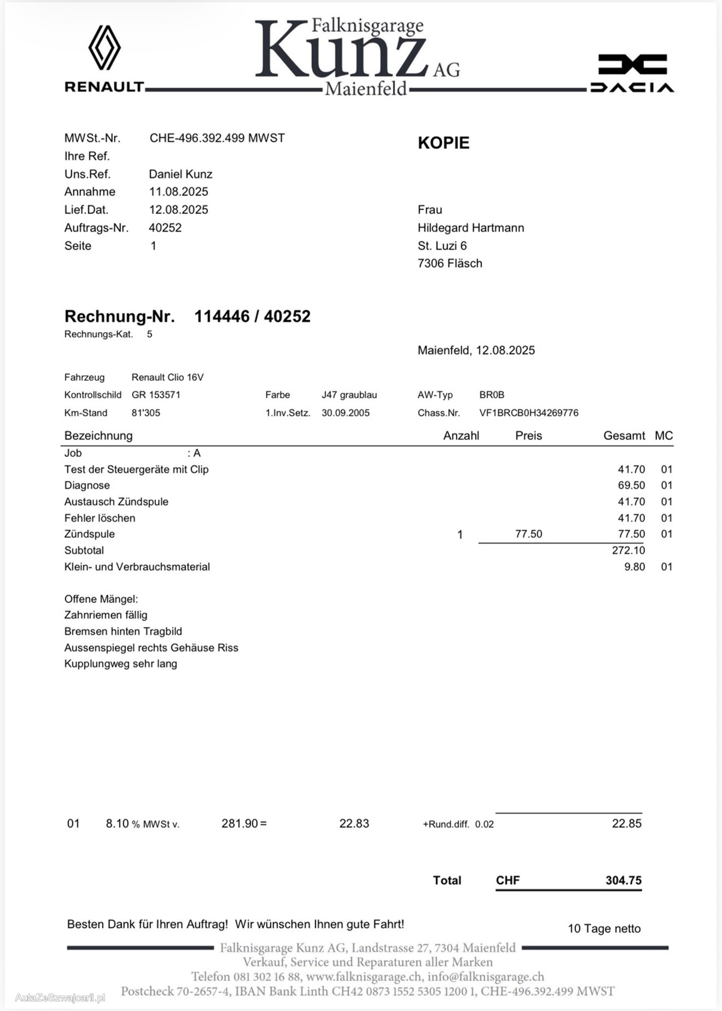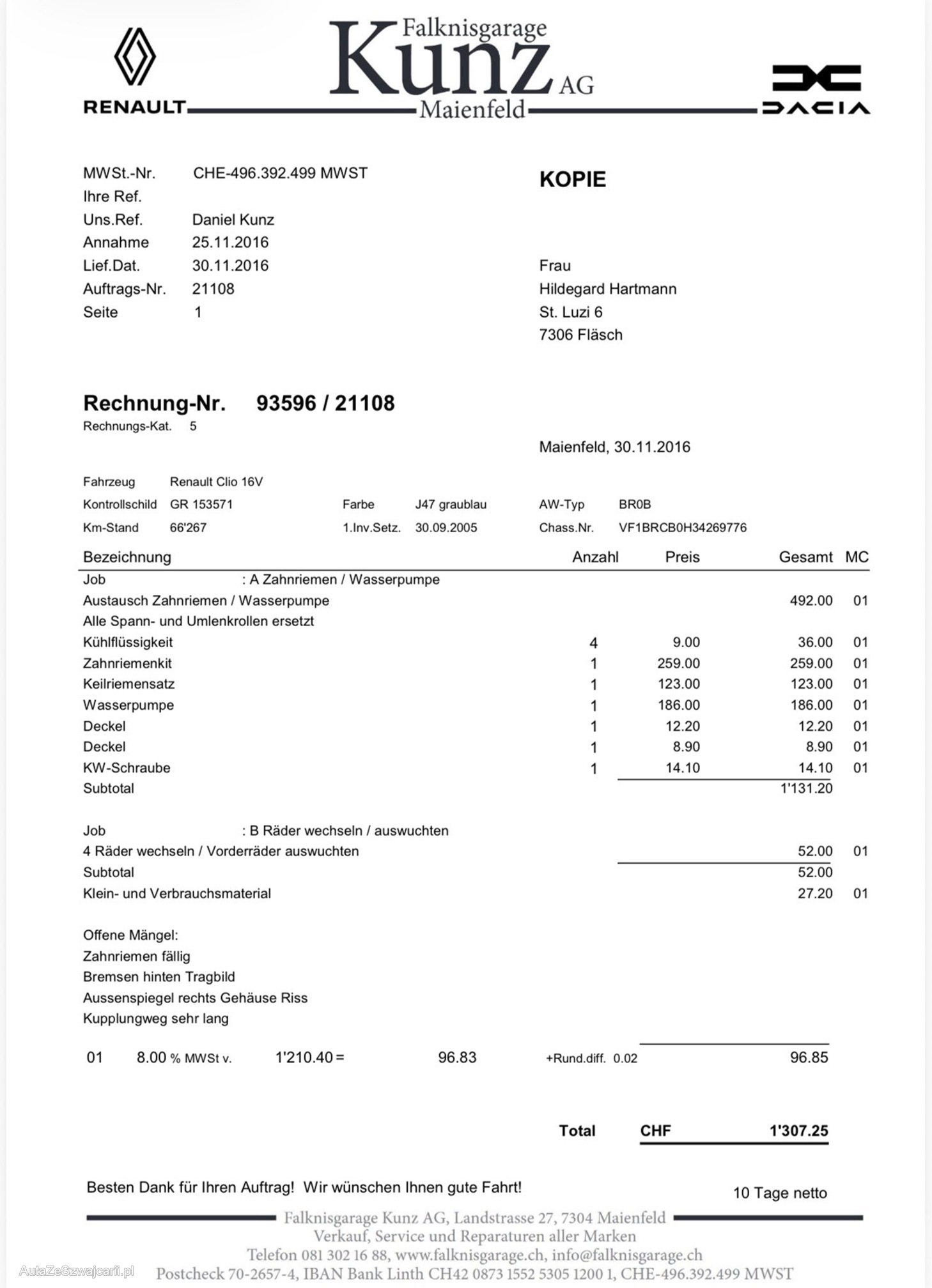| Kommentar | Fahrzeug wurde kein Werkstatttest gemacht (Für sichtbare oder nicht sichtbare Mängel wird nicht gehaftet). Wir testen und prüfen nicht alle Funktionen vom Fahrzeug. Das Risiko liegt somit vollumfänglich beim Käufer. Nach erhalt des Zuschlags, gibt es keine Nachverhandlung, auch wenn nicht deklarierte Mängel zum Vorschein kommen. Ab Platz ohne Garantie oder Gewährleistung, Wandelung und Minderung werden wegbedungen. |