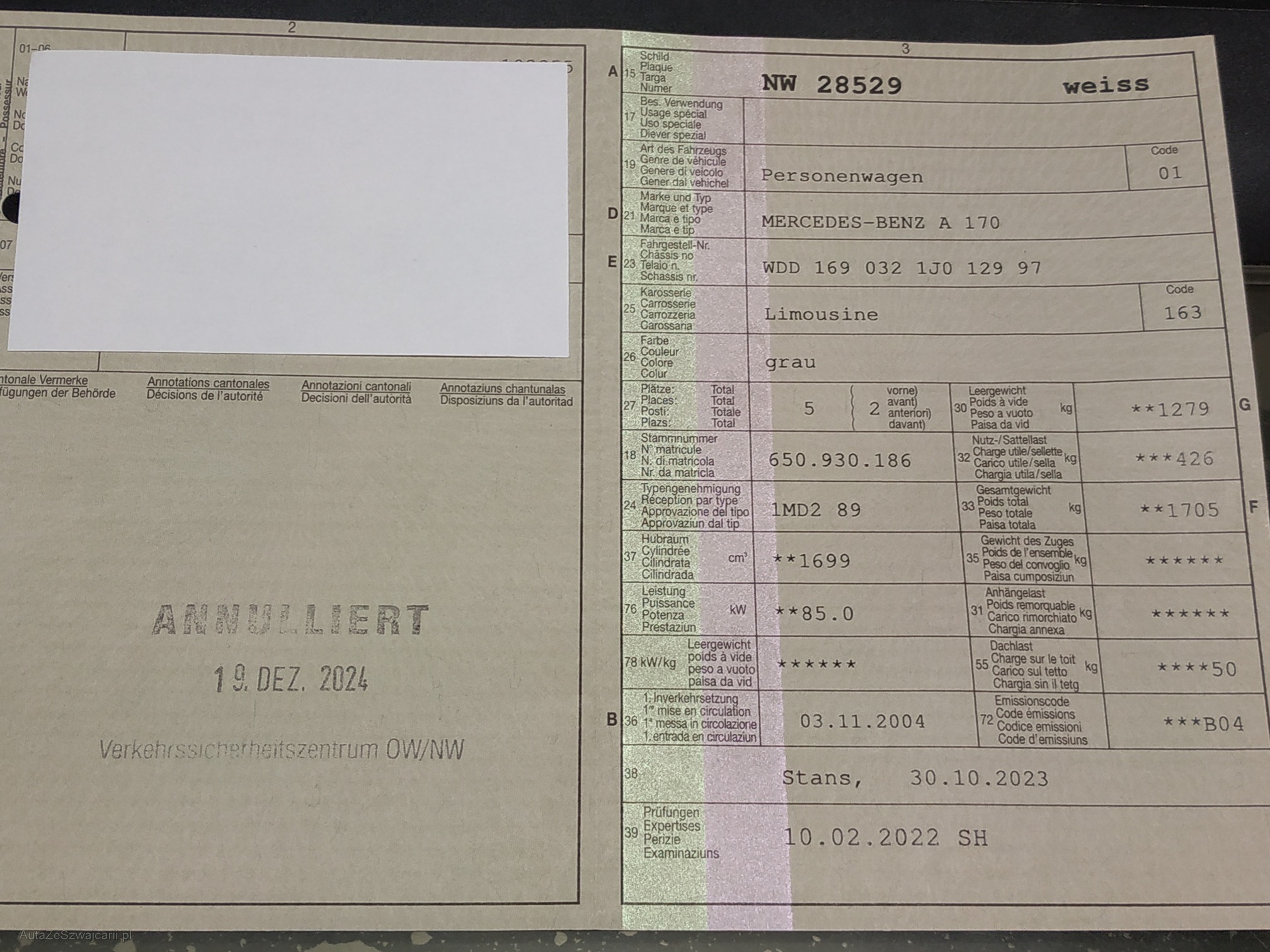 | Kommentar | Eintauschfahrzeug / Motor läuft normal / Schaltung geht streng / Fahrzeug ist fahrbar / Display Tacho zeigt nicht immer an / Servicebuch + 1 Zündschlüssel vorhanden / Fahrzeug hat Gebrauchspuren - Zustand gemäss Fotos / Innenraum dem alter entsprechend gut / Kein Werkstatttest durchgeführt Das Fahrzeug kann gerne bei uns besichtigt werden. |