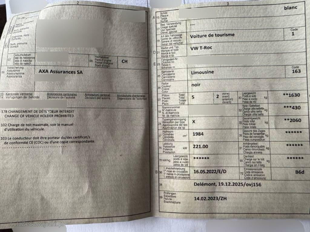 | Fahrzeugausweis | Vorhanden |