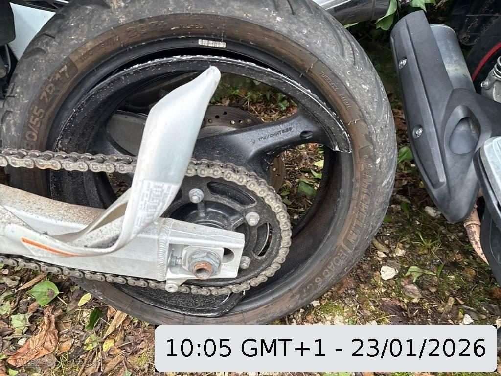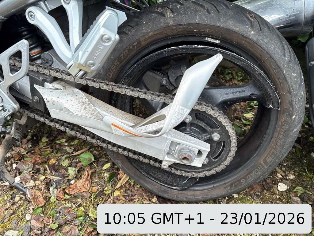 | Beschädigungen | Auspuffkollektor, Auspufftopf, Aussenspiegel rechts, Front, Fussraster rechts, Griff rechts, Heckverkleidung, Lenker, Rad hinten, Rahmen, Rücklicht, Schutzblech hinten, Schwinge, Seite rechts, Tank, Verschalungen links, Verschalungen rechts, Verschalungen vorne, Windschutzscheibe |