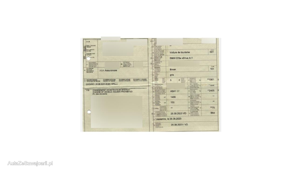 | Fahrzeugausweis | Vorhanden |