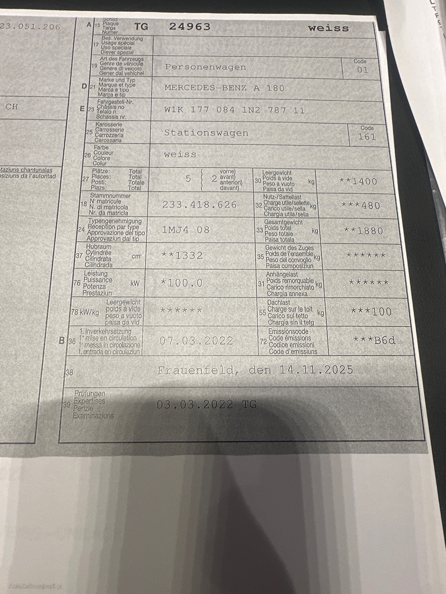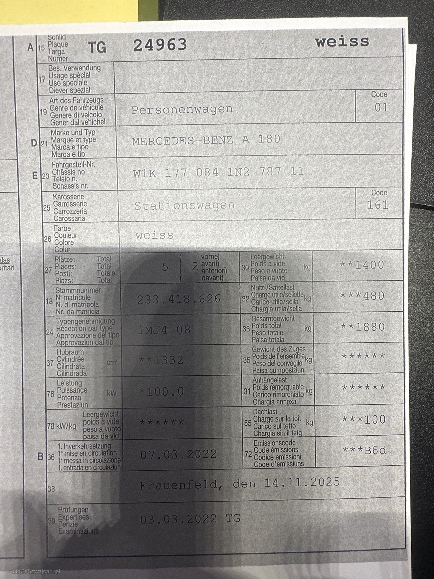 | Kommentar | Verkauf ausschliesslich ab Platz, Jede Gewährleistung, soweit nach Gesetz möglich, wird wegbedungen, insbesondere sind Wandelung und Minderung ausgeschlossen. Der technische Zustand ist unbekannt, das Fahrzeug wurde nicht geprüft. Zustand wie auf den Bildern, kann jedoch bei der Abholung abweichen. (z. B. Mängel, die uns nicht bekannt sind.) Sämtliche Mängel sind Sache des Käufers. Keine Rücknahme, keine Nachverhandlung, kein Preisnachlass. Kauf erfolgt wie gesehen. |