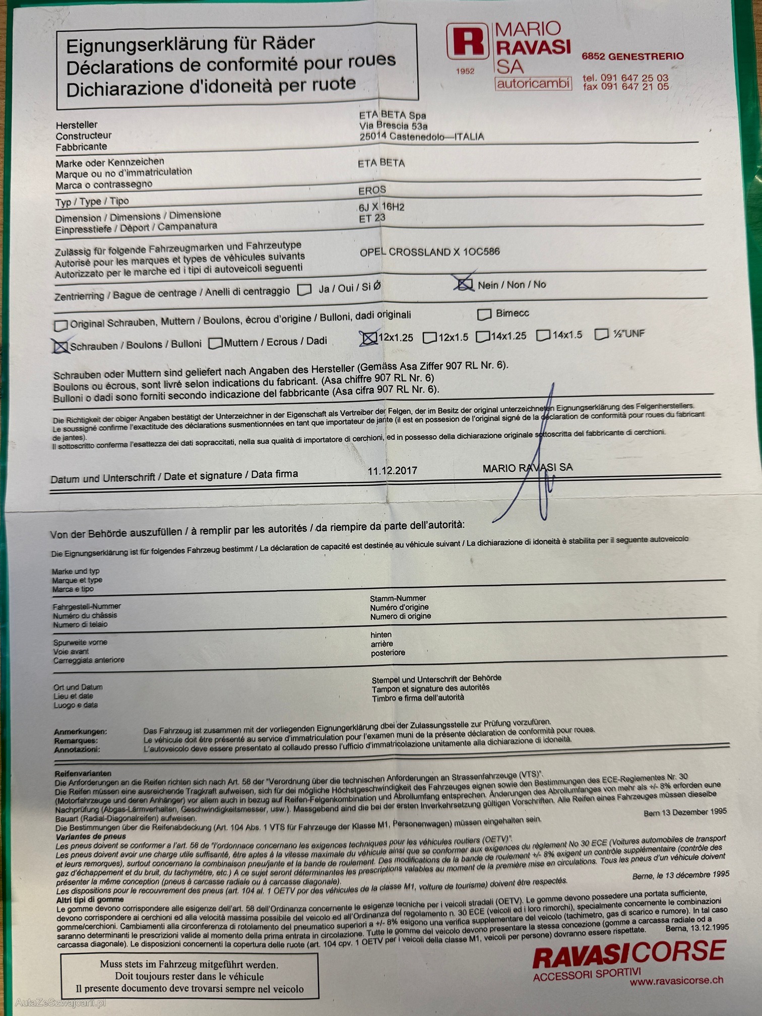 | Kommentar | Auspuff ist durchgerostet Bremsen sind vorne & hinten rostig Motor hat einen hohen Ölverbrauch laut Kunde Felgen sind nicht Original (ist nicht im Ausweis eingetragen) Beiblatt vorhanden.(siehe Foto) Zustand gem Fotos. Es wurden keine weiteren technische Prüfungen durchgeführt. |
