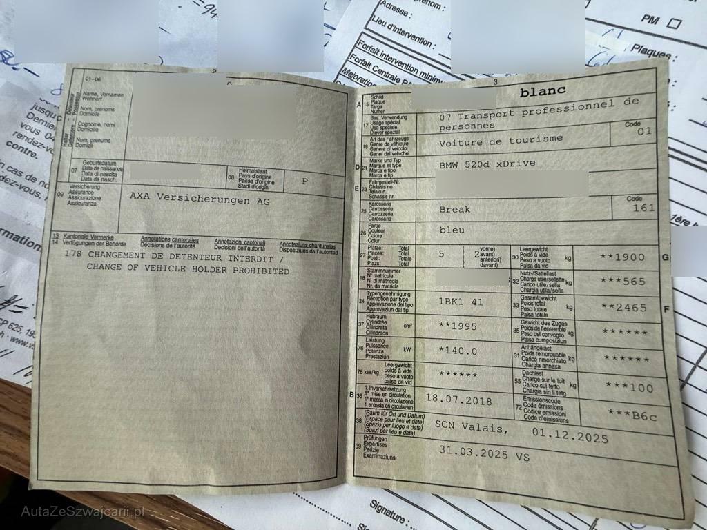 | Fahrzeugausweis | Vorhanden |