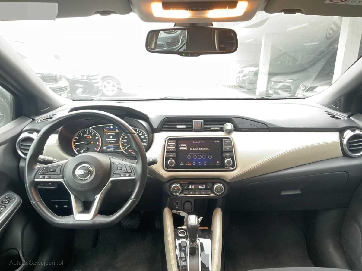 | Serienausstattung | Reifenreparatur-Set mit Kompressor, Seitenairbags vorne und Kopfairbags vorne und hinten, Gurtstraffer mit Gurtkraftbegrenzer vorne, TPMS Reifendrucküberwachungssystem, Lackierung: Uni-Lackierung, Licht: LED-Tagfahrlicht, Heckscheibenheizung, Nebelscheinwerfer, Assist: Berganfahrassistent, Verkehrszeichenerkennung, Media: AROUND VIEW MONITOR für 360° Rundumsicht, Cupholder vorne und hinten, Lenkrad: Lenkradfernbedienung, Räder: 4 Leichtmetallfelgen 17J mit Pneu, Media: Bose Premium Audio System, Sitze: Fahrersitz höhenverstellbar, Assist: Fussgängererkennung, Media: USB/MP3-Schnittstelle, Park Distance Control hinten, Assist: Regensensor für Scheibenwischer vorne, Laderaumabdeckung, Elektrische Fensterheber vorne + hinten, Licht: Fahrlichtautomatik, Stopp-/Start-System, ISOFIX Kindersitzvorrichtung, Media: 4 Lautsprecher, Aussenspiegel in Wagenfarbe, Voll-LED-Scheinwerfer (LED-Abblendlicht, LED-Fernlicht, LED-Nebelscheinwerfer, Automatische Leuchtweitenregulierung), Ambientebeleuchtung Multi-Colour LED, Scheibenwischer vorne mit Intervall, Klimatisierungsautomatik, Totwinkel-Assistent, Drehzahlmesser, Drittes Bremslicht, Make up-Spiegel rechts, Make up-Spiegel links, Sportlenkrad, Sitze: Vordersitze heizbar, ABS, EBD elektronische Bremskraftverteilung, Elektronisches Stabilitäts-Programm (ESP), Geschwindigkeitsbegrenzer, Notbremsassistent, Türgriffe innen verchromt, Ablagen in den Türen, Heckscheiben-Wisch-/Waschanlage, Kollisionswarnung, Licht: Fernlicht-Assistent, Tempomat, Steckdose 12V, NissanConnect Navigationsystem mit 7'' Touchscr. inkl. TomTom Services 3 Jahre Gratis, USB, Bluetooth, Apple CarPlay/ Android Auto, iPod-Gateway, DAB+, AUX, Lenkrad tiefenverstellbar, Lenkrad höhenverstellbar, Stoff-Ausstattung, Aussenspiegel rechts und links beheizt, elektrisch verstell- / und einklappbar, Assist: Chassis Control Technologie (CCT) Aktive Spurkontrolle, Aktive Fahrkom- fortregelung, Türgriffe aussen in Wagenfarbe, Kopfstützen vorne höhenverstellbar, Abgedunkelte Seiten- und Heckscheibe, Gurtkontrolle, Nebelschlussleuchte, 3-Punkt-Sicherheitsgurte auf allen Plätzen, Rücksitze geteilt abklappbar, Bremsassistent (BAS), LED Blinker im Aussenspiegel, Lenkrad und Schalthebelgriff in Leder, Bordcomputer, Anzeige von: Aussentemperatur, Verbrauch, Uhrzeit, Kraftstoffreserve, Geschwindigkeit, Wartungseinstellungen, Katalysator geregelt, Airbag: Airbag Beifahrer deaktivierbar, Assist: Rückfahrkamera, Airbag: Airbag Fahrer und Beifahrer, Pollenfilter (Staubfilter), Staufach vorne in der Mittelkonsole, Wegfahrsperre elektronisch, Stufenloser Automat, Servolenkung, Zentralverriegelung mit Fernbedienung |