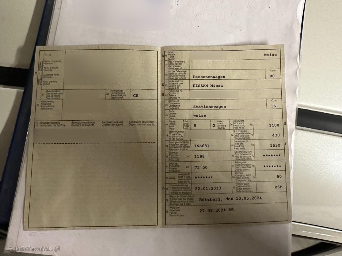 | Fahrzeugausweis | Vorhanden |
