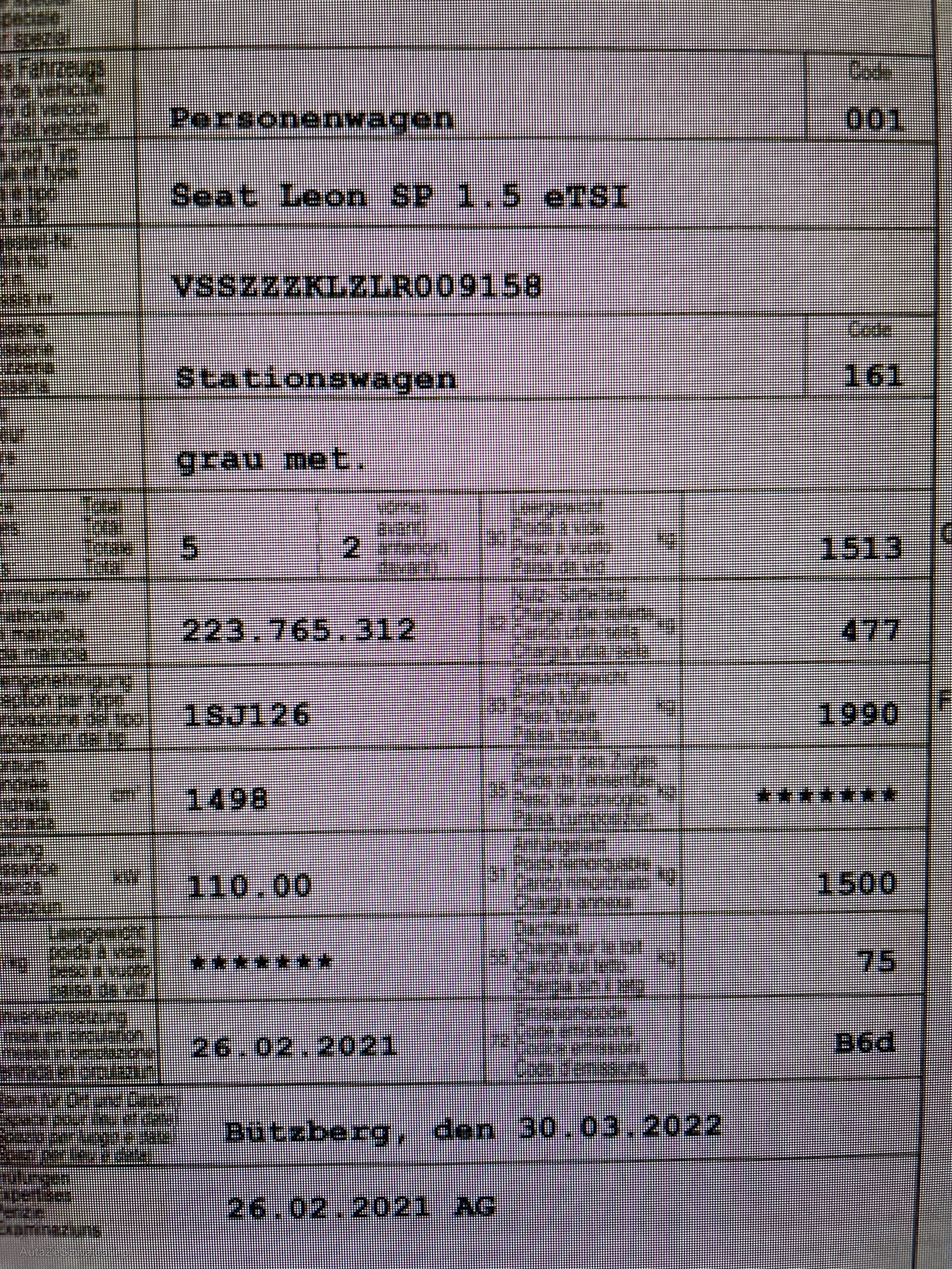 | Kommentar | Frisch ab Service (Siehe Dokumente). Fahrzeug ab Platz, jede Gewährleistung wird wegbedungen, insbesondere sind Wandelung und Minderung ausgeschlossen. Eine Garantie wird nicht gewährt. |