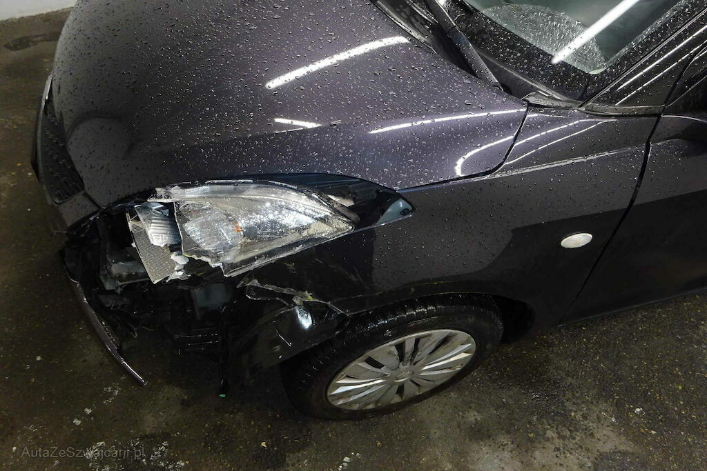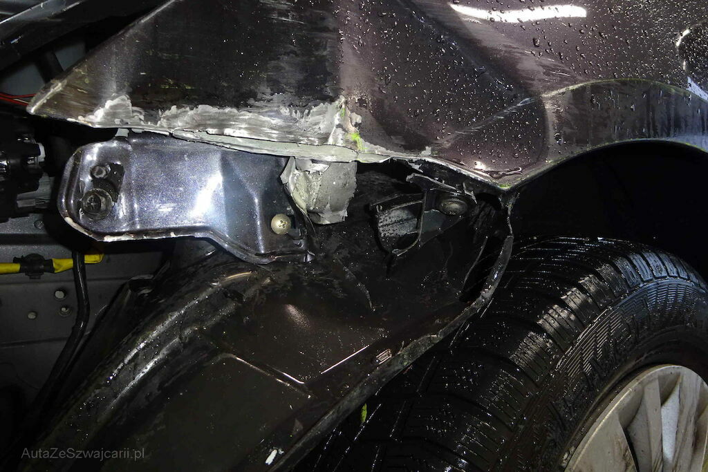 Pare-chocs, capot, phare, aile, passage de roue et support endommagés