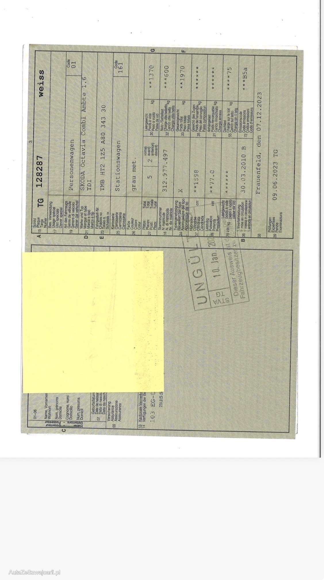 | Kommentar | Verkauf ausschliesslich ab Platz, Jede Gewährleistung, soweit nach Gesetz möglich, wird wegbedungen, insbesondere sind Wandelung und Minderung ausgeschlossen. Der technische Zustand ist unbekannt, das Fahrzeug wurde nicht geprüft. Zustand wie auf den Bildern, kann jedoch bei der Abholung abweichen. (z. B. Mängel, die uns nicht bekannt sind.) Sämtliche Mängel sind Sache des Käufers. Keine Rücknahme, keine Nachverhandlung, kein Preisnachlass. Kauf erfolgt wie gesehen. Booster mitnehmen > Fahrzeug muss man überbrücken |