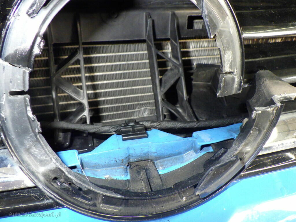Choc avant: déformation du pare choc, calandre, condenseur, capot moteur, porte-serrure, gicleur lave-phare gauche, les 2 phares. Voir devis et photos!