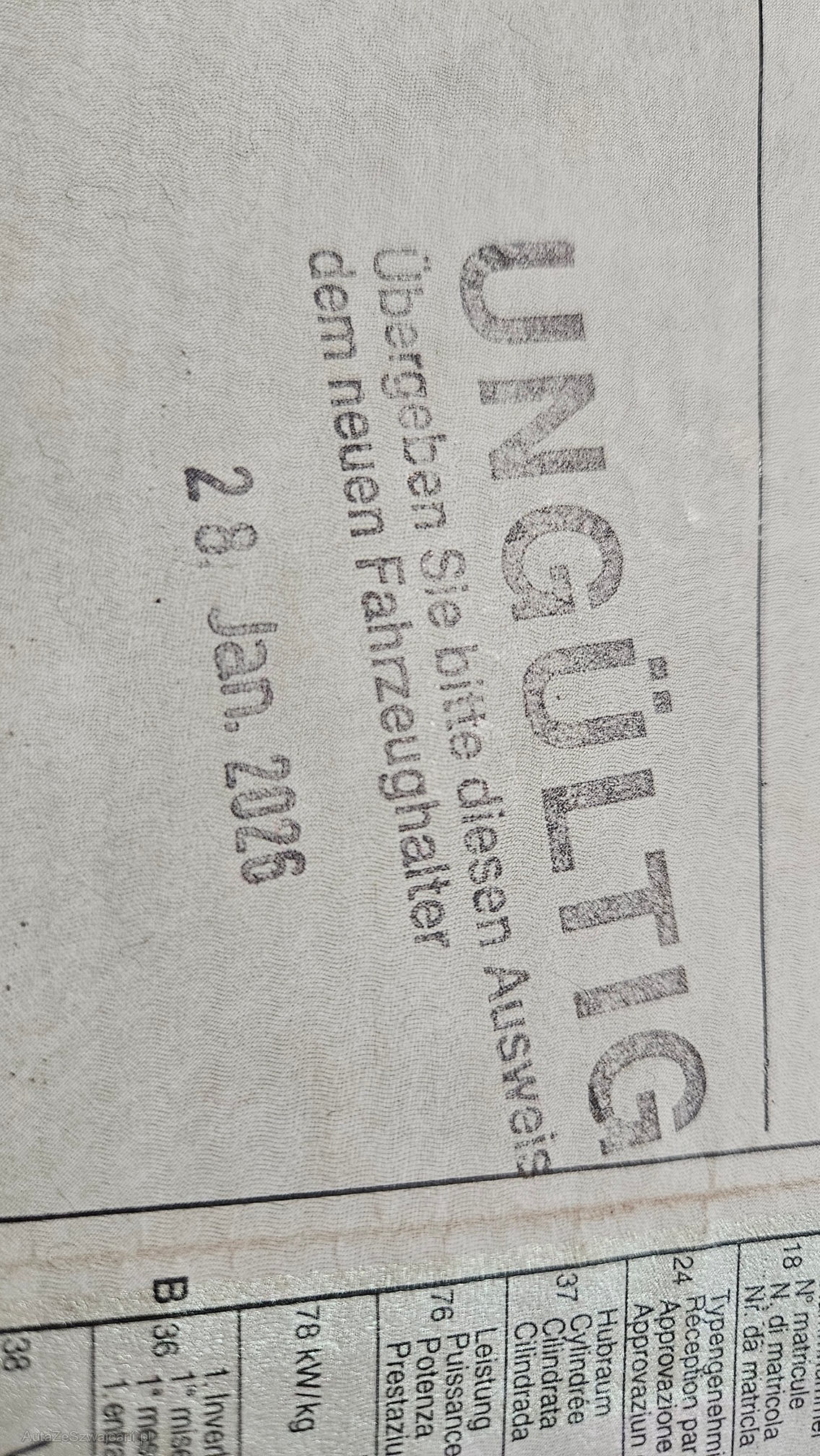 | Kommentar | Fahrzeug hat Heckschaden. Hinterachs ist verschoben. Motor läuft einwandfrei. Nur ein Schlüssel vorhanden siehe Foto. Fahrzeug hat diverse Gebrauchsspuren. |