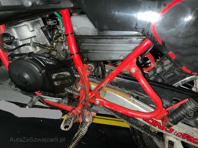 | Condition_and_Equipment | Zustand Fahrzeug muss transportiert werden (Höhe und Breite beachten). Fahrzeug ist NICHT fahrbar. Zweirad-Kategorie Motorrad --- Front Vorderrad beschädigt. Gabel beschädigt. Lenker verbogen. Motor Öl-/Kraftstoffaustritt vorhanden Sonstige Schäden Div. Teile sind leicht beschädigt. |