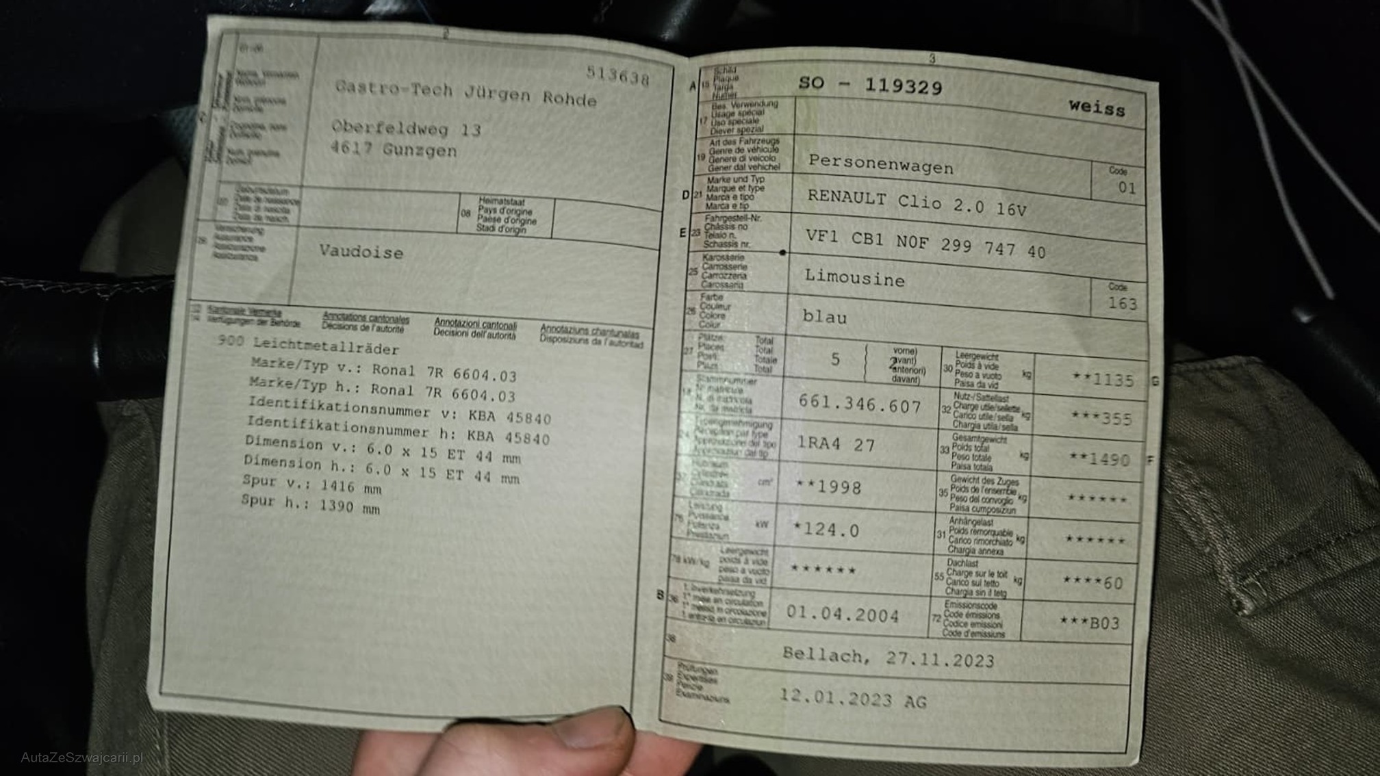 | Kommentar | KEIN WERKSTATTTEST DURCHGEFÜHRT. Angaben vom Kunden: leichter Hagelschaden ESP Lampe leuchtet zeitweise Carrosserie nicht mehr die schönste (Fotos) Zubehör Auspuffendtopf FOX inkl. Papiere Leichter Hagelschaden jede gewährleistung wird wegbedungen insbesondere sind wandelung und minderung ausgeschlossen |