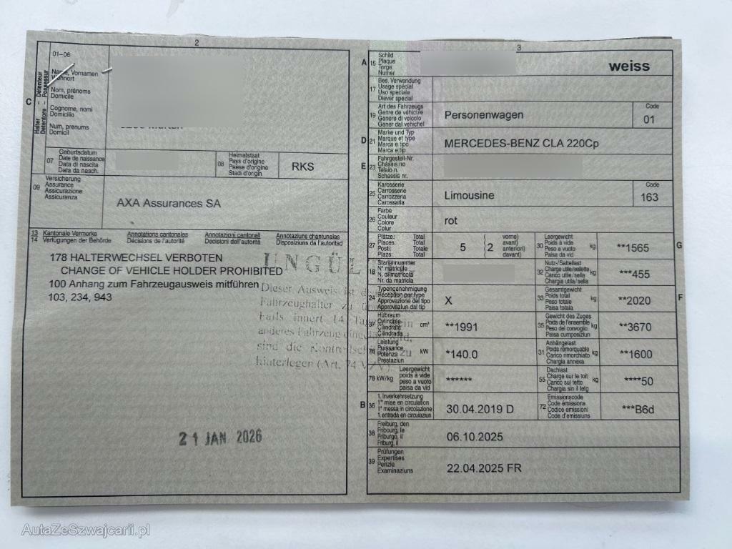 | Fahrzeugausweis | Vorhanden |