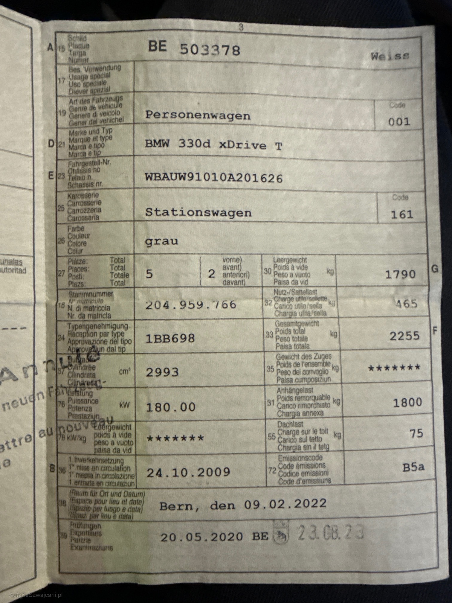| VIN | WBAUW91010A201626 |