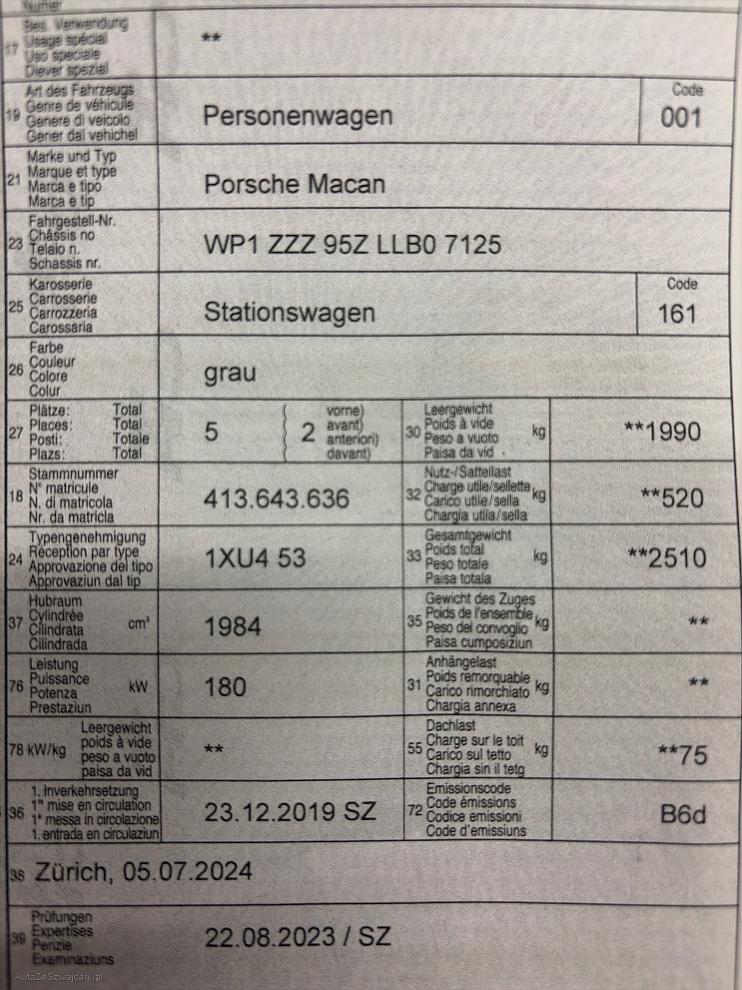 | VIN | WP1 ZZZ 95Z LLB0 7125 |