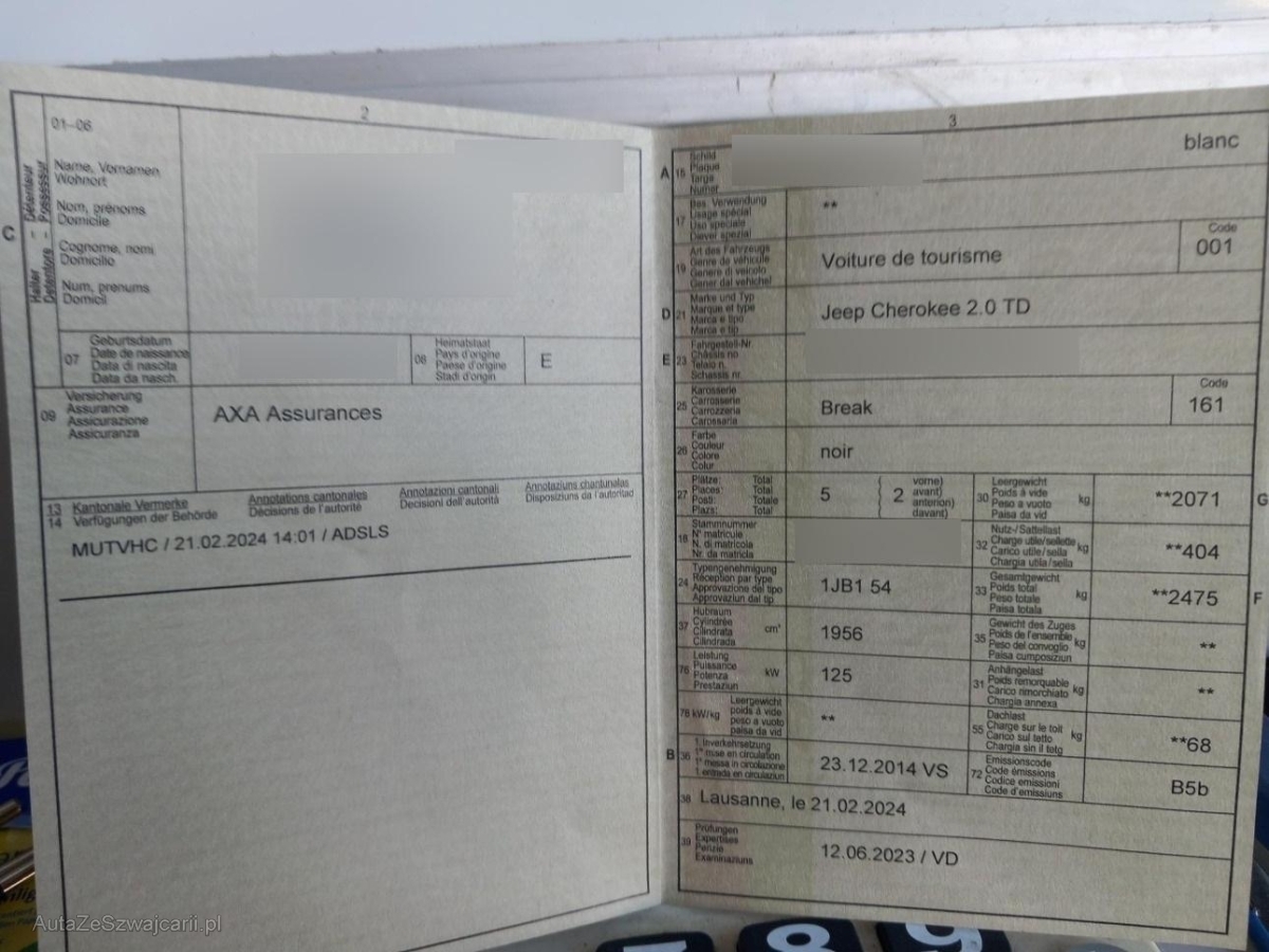 | Fahrzeugausweis | Vorhanden |