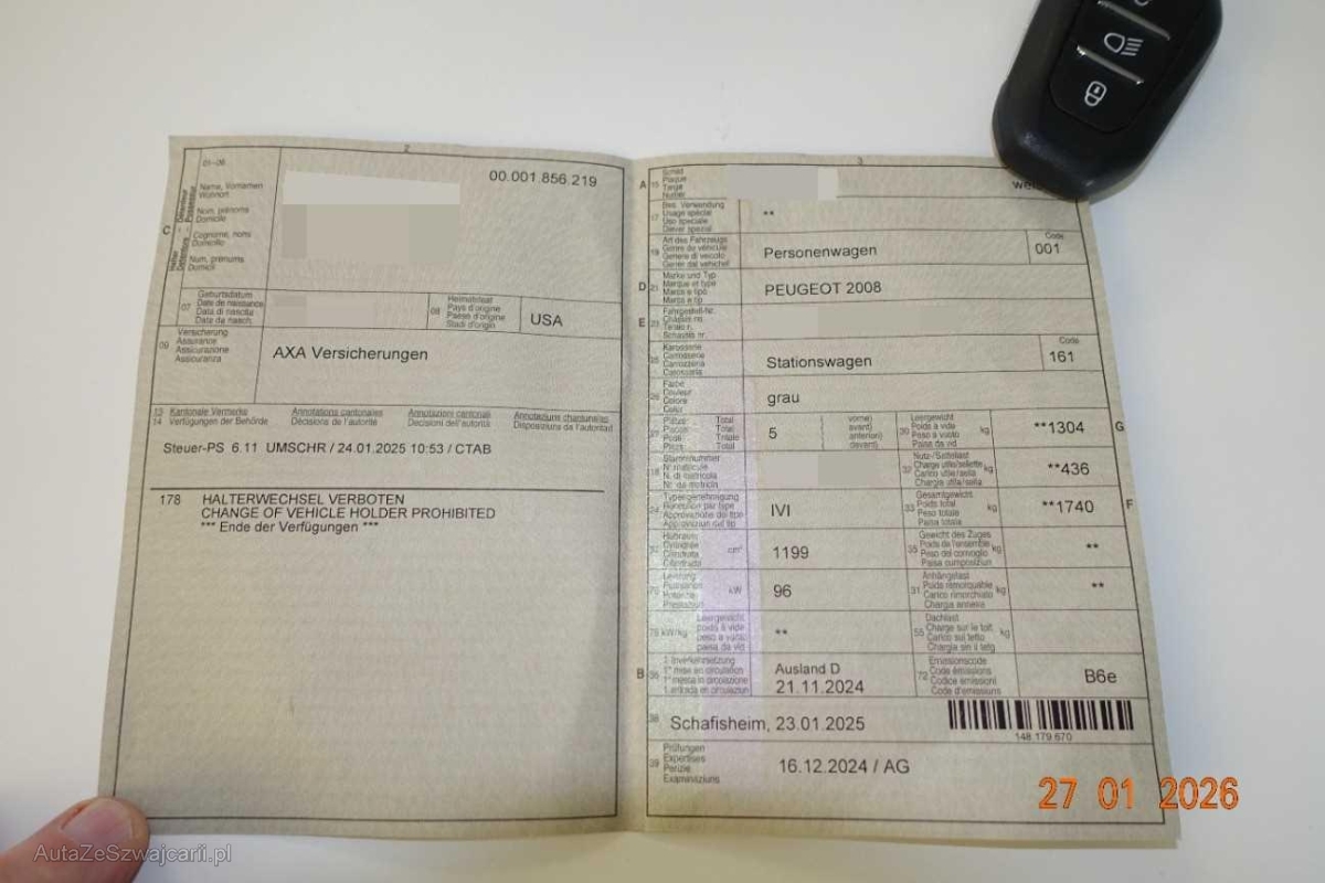 | Fahrzeugausweis | Vorhanden |