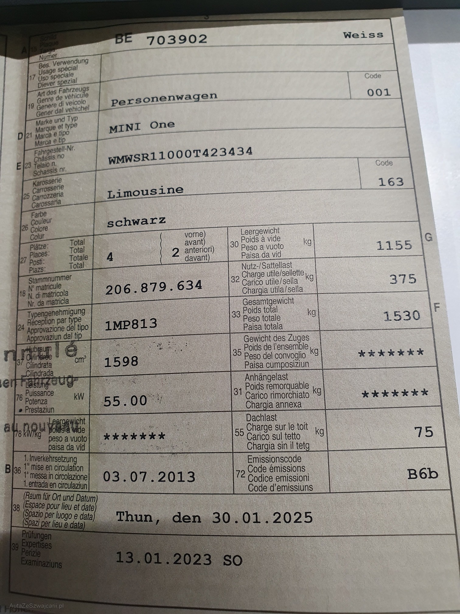 | Kommentar | Serviceheft wurde noch nicht gefunden. (Service wurden regelmäsig gemacht) - Wasserkühler ersetzt - Fahrzeug ist prüfbereit |