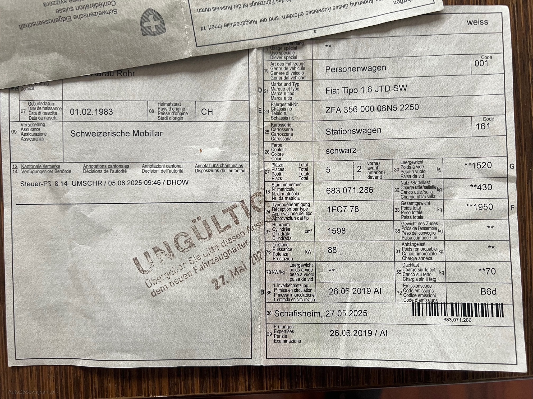 | Letzte Inspektion | 2019-06-01 |