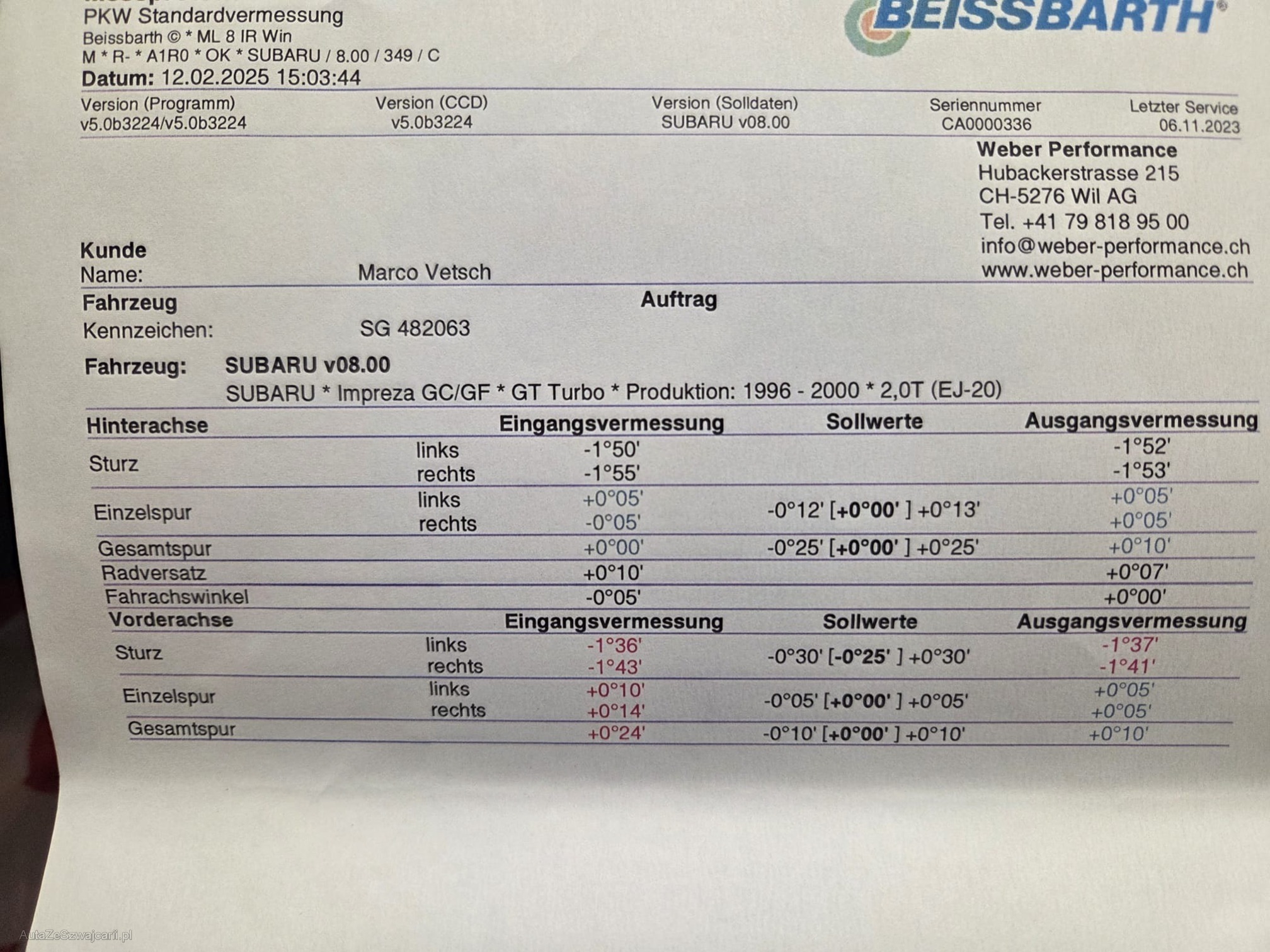 | Rost am Fahrzeug | No |