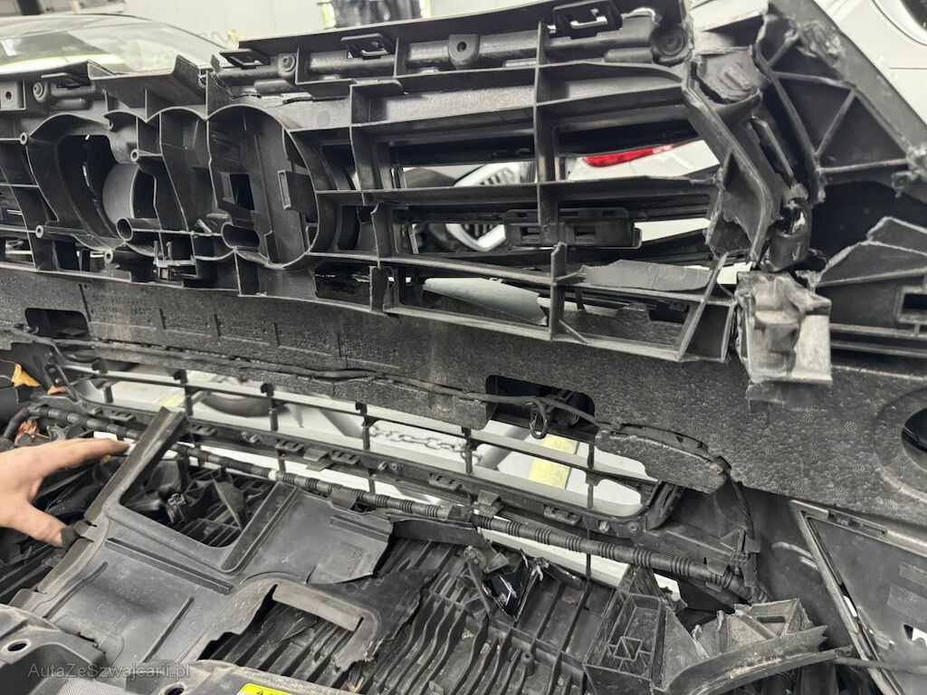 Dabei wurde die gesamte Stossstange, beide Matrix Scheinwerfer, alle Kühler, die Motorhaube und diverse Anbauteile deformiert.